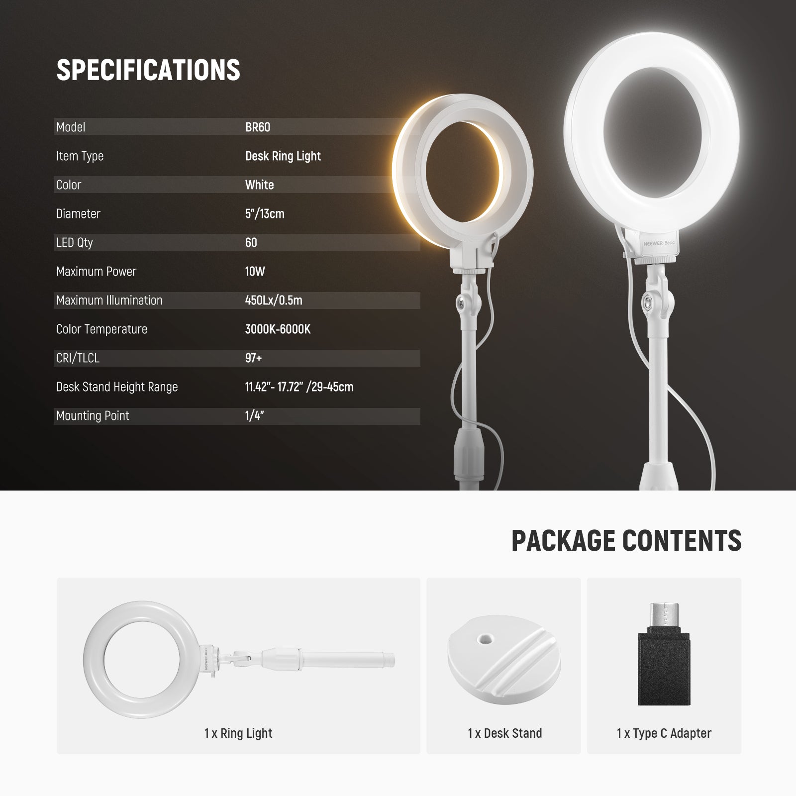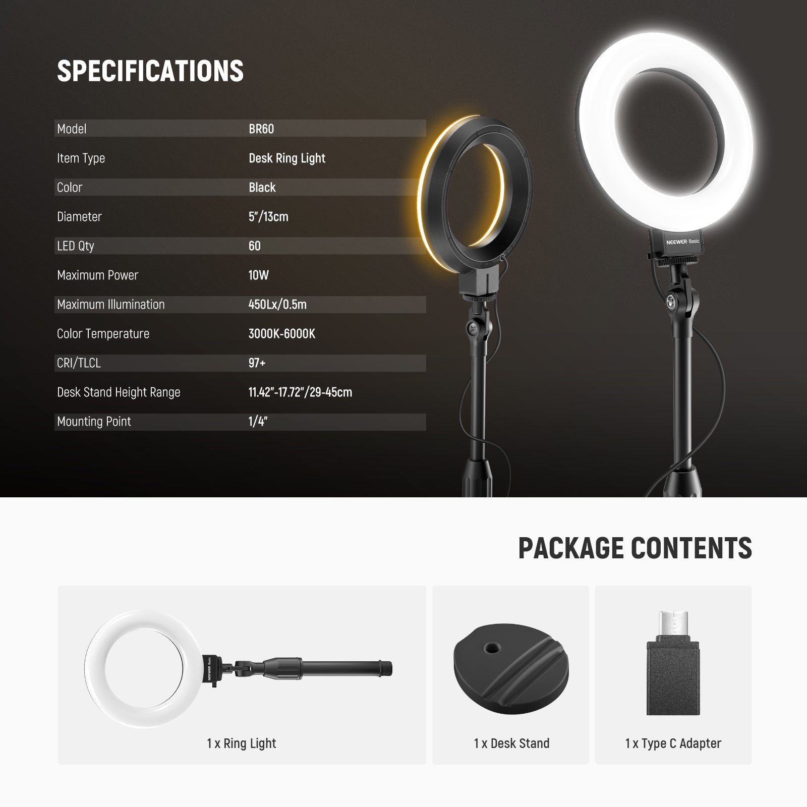 Anneau lumineux de bureau NEEWER BASICS BR60 5"/13 cm avec pied