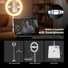 - Ideal for Phone Photography- A 360° universal phone mount secures your phone at the center of the portable LED ringlight, delivering direct, diffused soft light for optimal photo and video quality in portrait & landscape modes. This large ring light with stand for video recording selfie filming vlogging, is compatible with iPhone 16 15 Pro Max Plus Samsung S24 Ultra cell phone, etc. Essential accessories and must have phone camera lighting gear for social media content creators and influencers