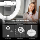 - Telescopic Desk Stand & 180° Tilt- The table halo selfie ring light includes an adjustable desktop mount, providing professional lighting height up to 32.3"/82cm for flexible positioning, ideal for desktop Zoom meetings call/video conferencing on laptop/computer/monitor/webcam. The light head tilts 180° backwards, enabling upward lighting from a lower angle