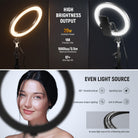 - Anneau lumineux bicolore puissant de 20 W - Cet anneau lumineux circulaire de 20 W offre une lumière puissante, idéale comme éclairage principal ou d'appoint, pour le maquillage, les esthéticiennes, les extensions de cils, les tatouages, l'éclairage pour l'enregistrement vidéo, le streaming en direct, les appels Zoom, les séances photo, les selfies et le tournage de vlogs TikTok. Ses 168 LED (84 blanc froid et 84 blanc chaud), sa gradation de 0 à 100 %, son flux lumineux de 1660 lx à 0,5 m et son IRC 97+/TLCI 98+ produisent une source de lumière vive ou douce, diffuse et uniforme, avec une précision des couleurs impeccable.