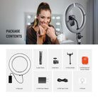- Pied d'éclairage réversible en métal - Le pied d'éclairage portable fourni, réglable en hauteur de 54 à 180 cm (21 à 71 pouces), permet de positionner l'anneau lumineux professionnel au-dessus de la tête ou à hauteur des yeux. Ses pieds se replient et se rangent facilement dans le sac de transport pour un rangement et un transport aisés.