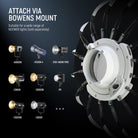 - Fixation via monture Bowens - Grâce à sa monture Bowens, la softbox est compatible avec les flashs Aputure 120D, Godox SL60w, SmallRig RC 120D et RC 120B, ainsi qu'avec les flashs NEEWER Q4, AS600B, CB300B, CB300C, CB200, CB200B, CB60, CB60B, S101-300W PRO, S101-400W PRO, S102-400W PRO, Vision 4 et Q300, et autres équipements d'éclairage studio (photographie, vidéographie et éclairage vidéo LED continu) dotés d'une monture Bowens.
