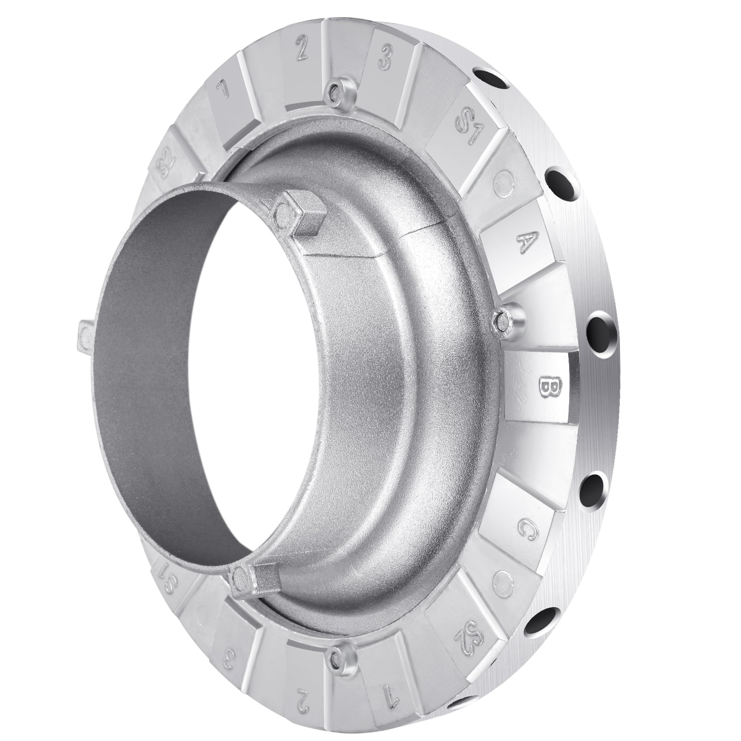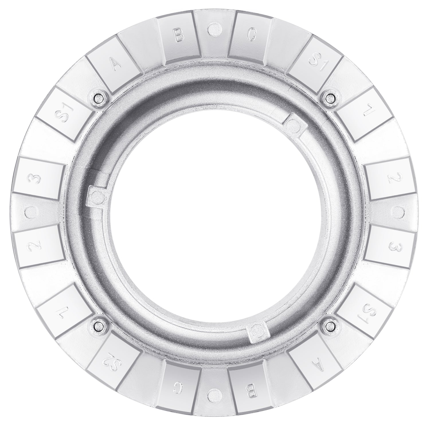 - Cette bague de fixation permet de monter une boîte à lumière sur n'importe quel luminaire de studio doté d'une monture de type Bowen.