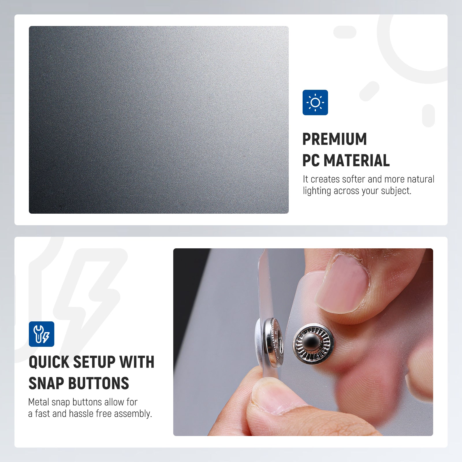 - Installation rapide grâce aux boutons-pression - Les boutons-pression métalliques permettent un montage rapide et sans tracas, vous permettant de vous installer et de commencer à filmer rapidement et sans délai.