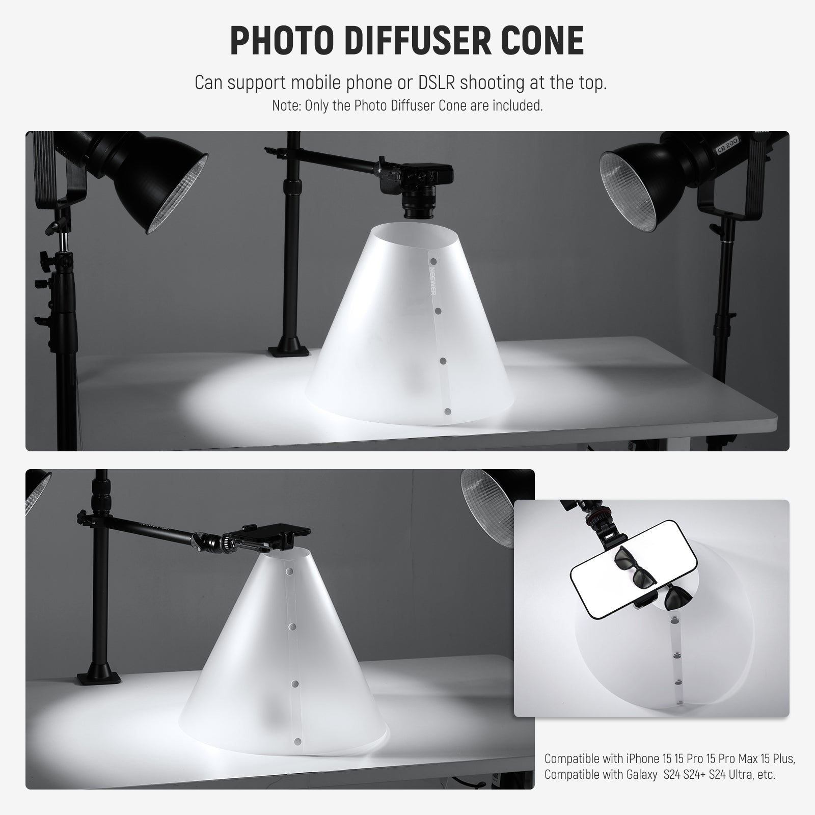- Nouvelle solution pour une suppression efficace des reflets : fabriqué en polycarbonate translucide de haute qualité, le cône diffuseur photo NEEWER, une alternative tendance aux boîtes à lumière traditionnelles, diffuse uniformément la lumière intense du flash pour réduire la surexposition et les ombres trop marquées sur le sujet. Il crée un éclairage plus doux et naturel pour des photos nettes, stéréoscopiques et de qualité professionnelle.