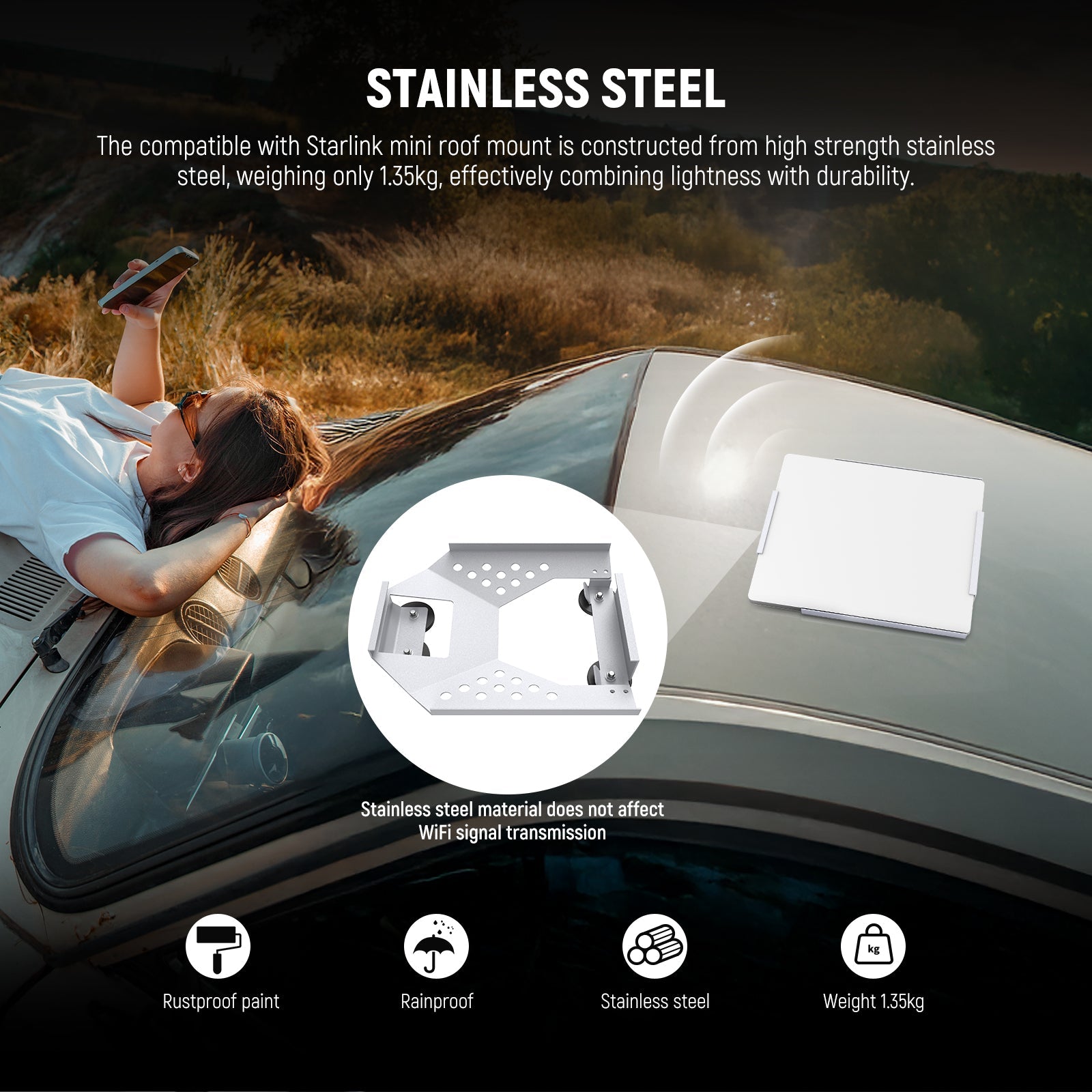 • Alliage d'aluminium de qualité aéronautique - Compatible avec le support de toit Starlink Mini, ce support est fabriqué en alliage d'aluminium haute résistance et ne pèse que 1,35 kg, alliant ainsi légèreté et robustesse. Son revêtement extérieur en peinture antirouille le protège des intempéries (pluie, eau de mer, soleil, brume) et de la corrosion, garantissant une longue durée de vie.