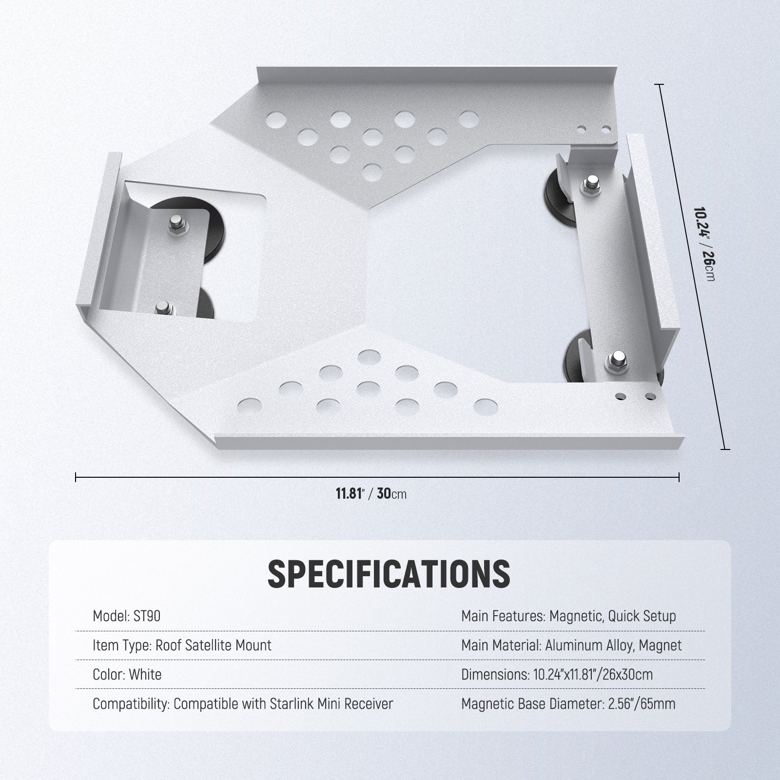 • Compatibilité parfaite – Le support magnétique de toit pour mini-antenne satellite NEEWER ST90 est conçu pour une compatibilité optimale avec le récepteur Starlink mini, offrant un point de fixation fiable pour les installations Internet temporaires ou permanentes. Ce support de voiture pour mini-antenne satellite est doté de quatre bords surélevés assurant un maintien sécurisé tout en permettant un accès libre aux connexions pour une réception du signal ininterrompue.