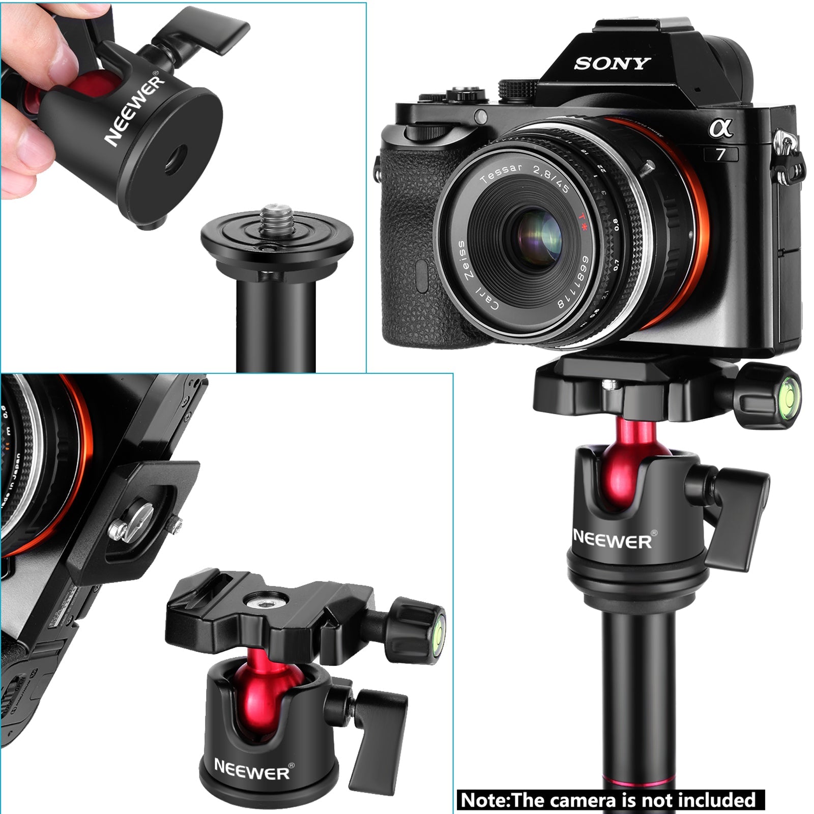 - Cette mini rotule possède une base panoramique à 360 degrés avec 2 verrous rotatifs, vous permettant ainsi de positionner facilement votre appareil photo sous différents angles.