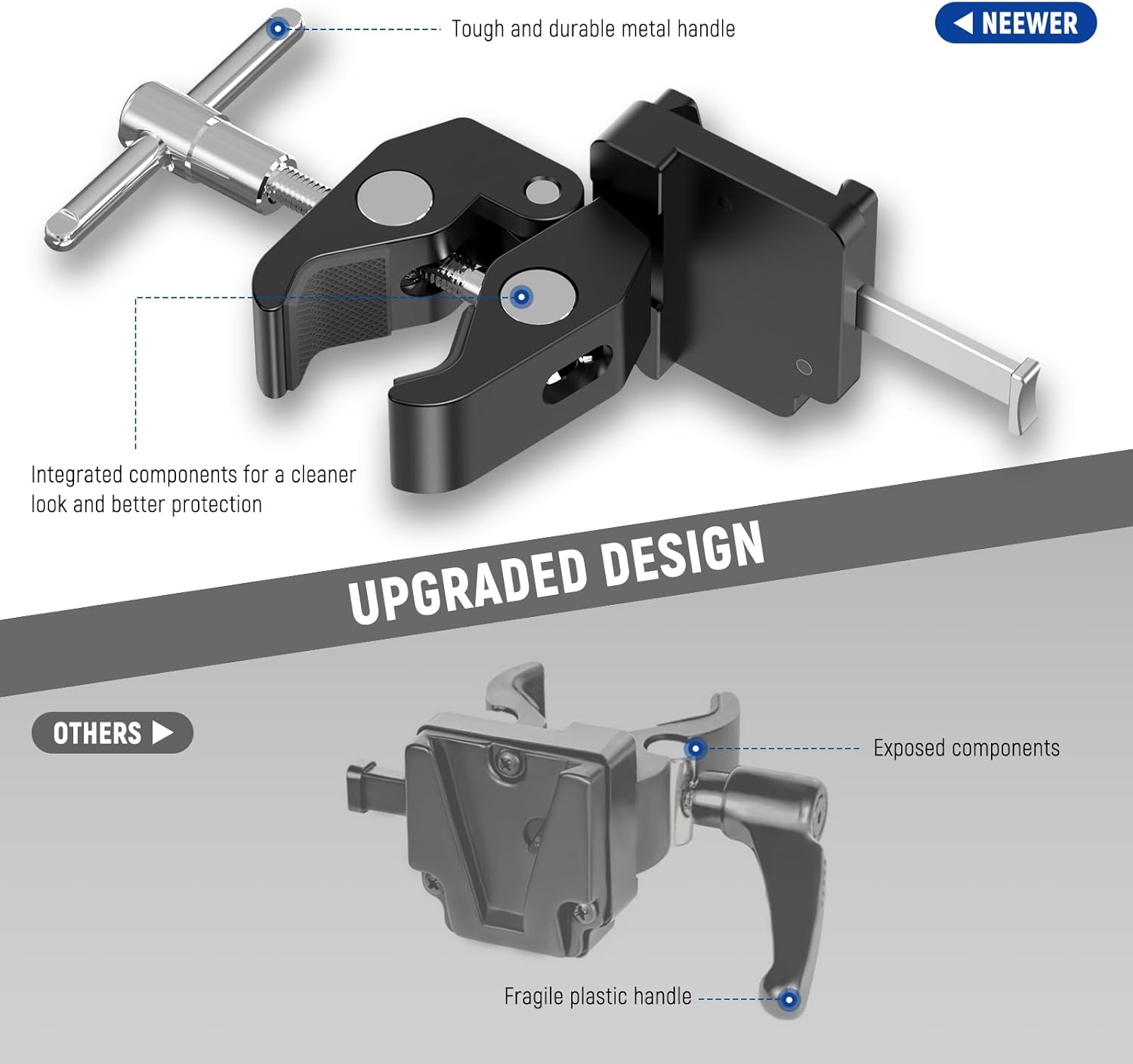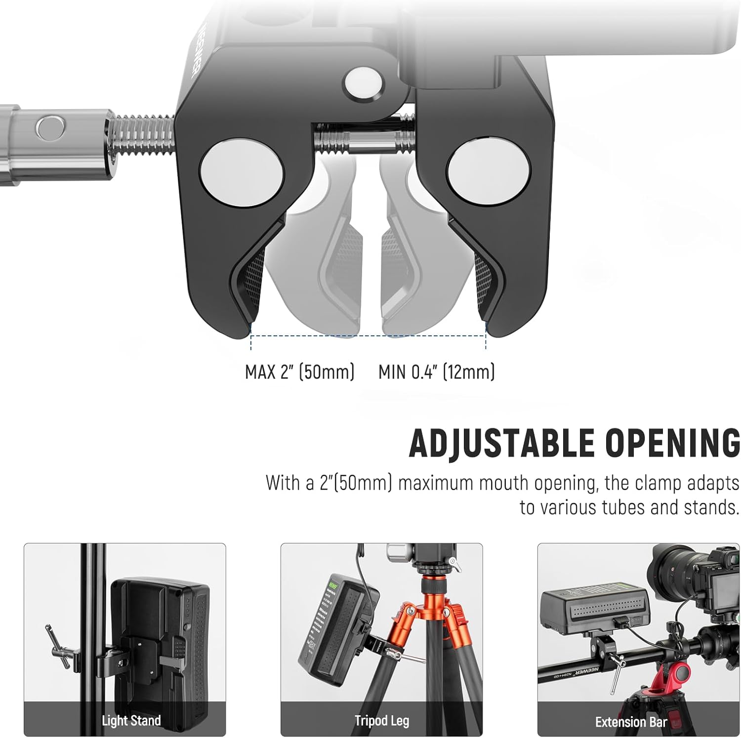 Support de trépied à pince NEEWER UA074 avec plaque de batterie à monture en V