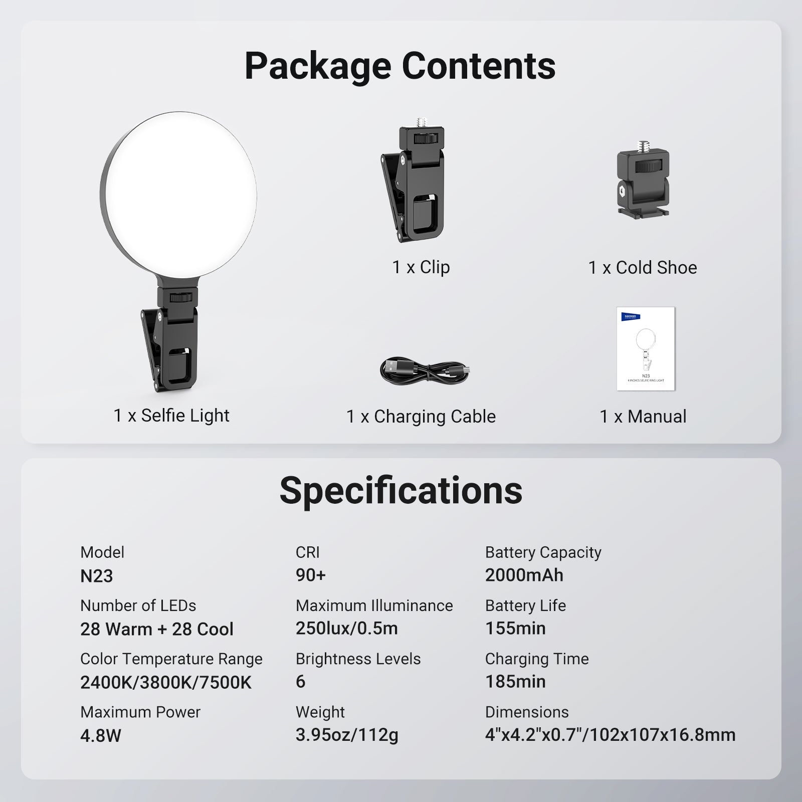Lampe selfie LED à pince NEEWER, version d'entrée de gamme N8/N6