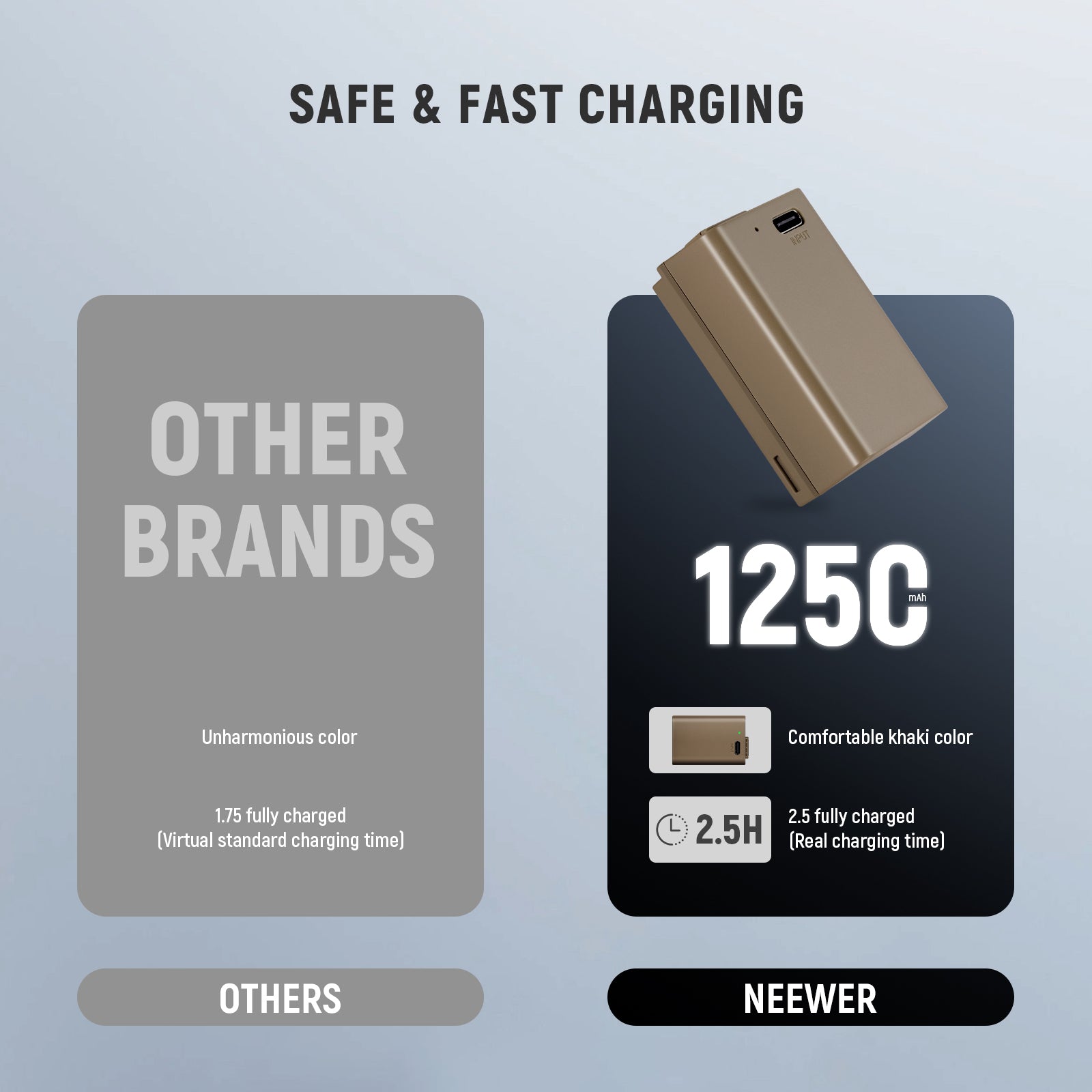 - Recharge rapide et sécurisée de la batterie : rechargez cette batterie de 1 250 mAh à 100 % en 2,5 heures à l’aide d’un chargeur mural USB 5 V 2 A (non inclus). Remarque : la charge rapide PD n’est pas prise en charge.