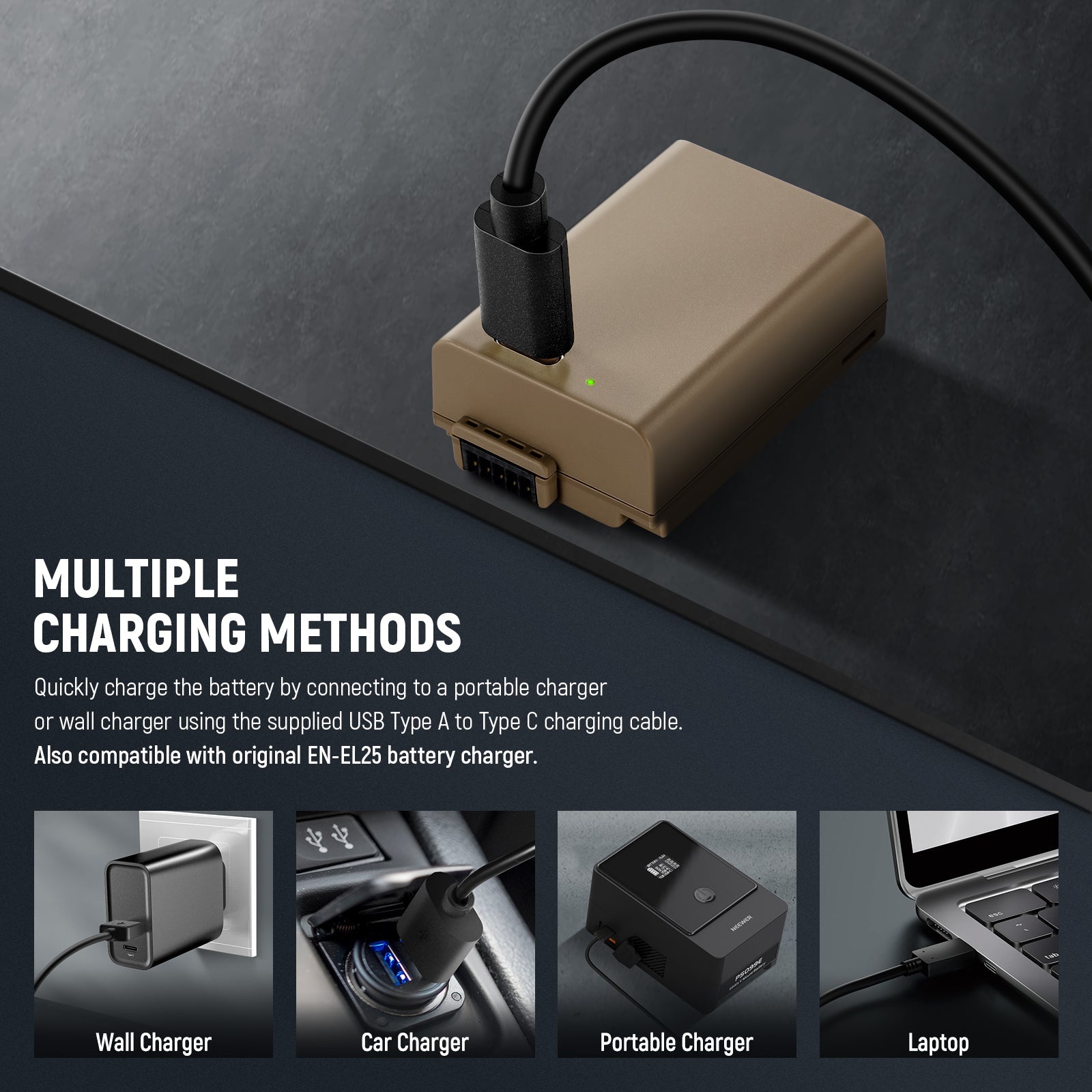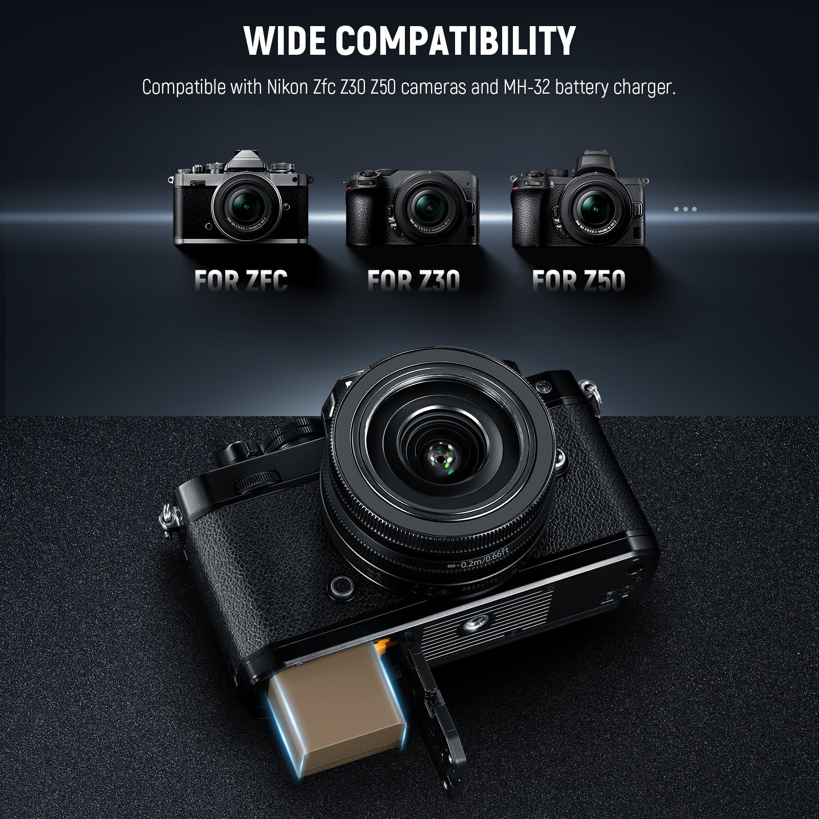 - Batterie de remplacement pour Nikon EN-EL25 - Cette batterie EN-EL25 est entièrement compatible avec les appareils photo Nikon ZFC Z30 et Z50 et le chargeur de batterie MH-32. Remarque : Déchargez complètement la batterie avant de la recharger pour la première fois.