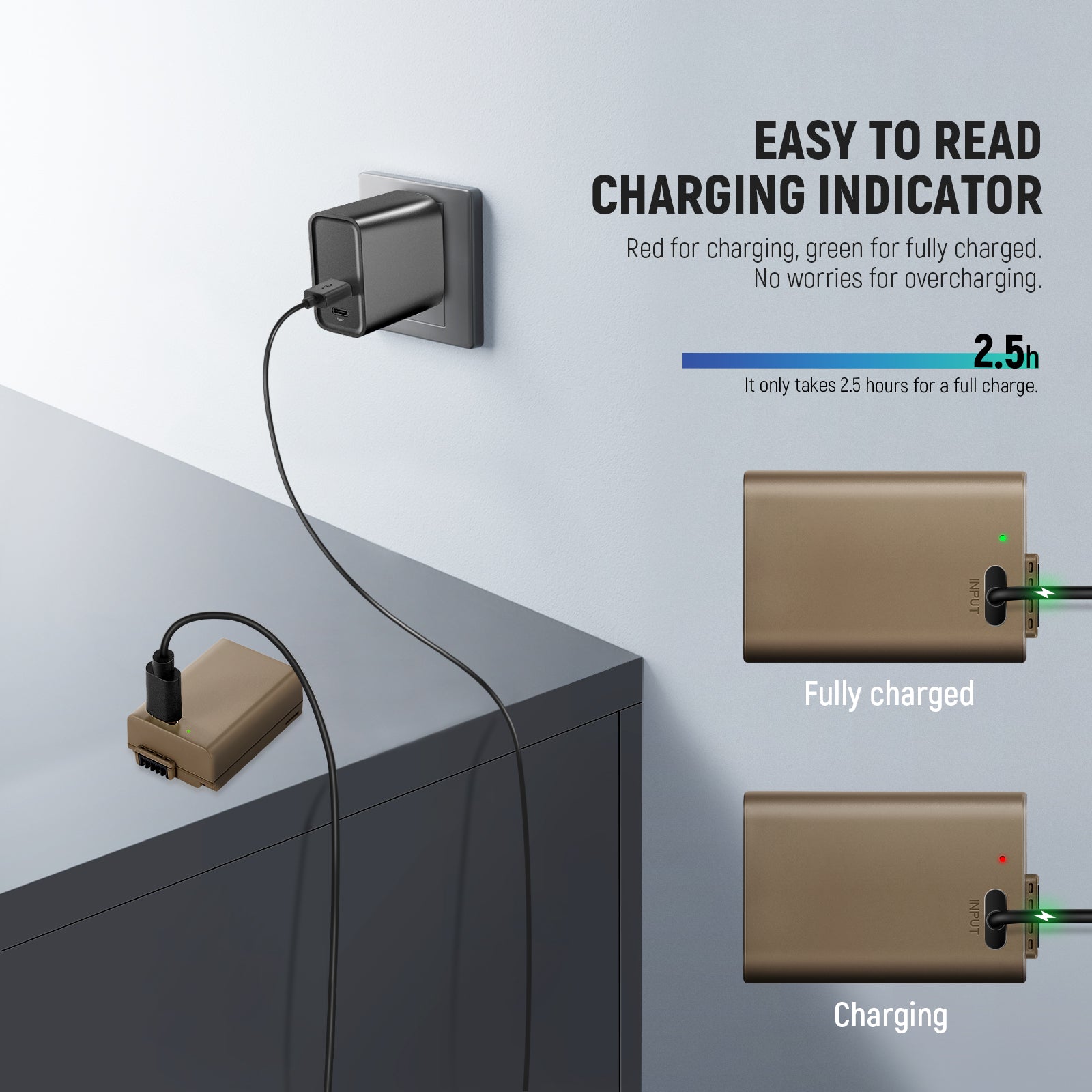 - Port USB Type C intégré – Dites adieu aux chargeurs de batterie dédiés. Grâce à son port de charge USB Type C intégré, cette batterie peut être alimentée directement par des adaptateurs secteur et des chargeurs portables via le câble USB Type C inclus.