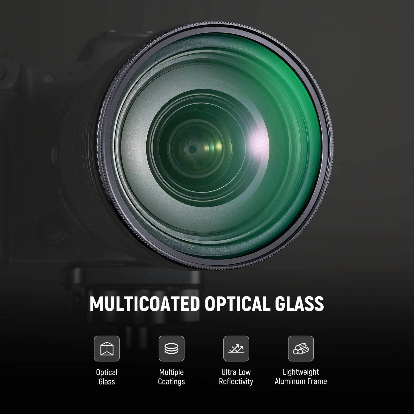 - Revêtements protecteurs multiples : plusieurs revêtements sur les deux faces du verre résistent à l’eau, à la poussière, aux traces de doigts et aux rayures. Un chiffon de nettoyage inclus permet de garder le filtre impeccable.