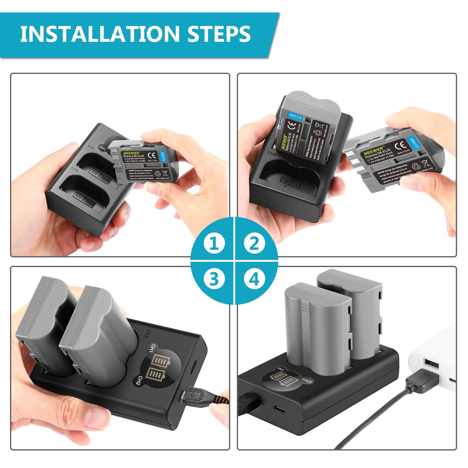 - Le pack de 2 batteries de remplacement Neewer pour Nikon EN-EL3E et le chargeur double USB sont compatibles avec les appareils photo reflex numériques Nikon D50, D70, D70s, D80, D90, D100, D200, D300, D300S, D700 et plus encore.