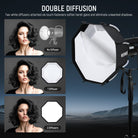 - Boîte à lumière octogonale professionnelle - Cette boîte à lumière octogonale de 90 cm (35,4 pouces) est dotée d'un revêtement intérieur argenté lisse et uniforme sur un tissu en nylon épais. Ce revêtement élargit, diffuse et adoucit la lumière tout en préservant la fidélité des couleurs. Elle comprend deux diffuseurs de lumière et une grille nid d'abeille pour un rendu optimal.