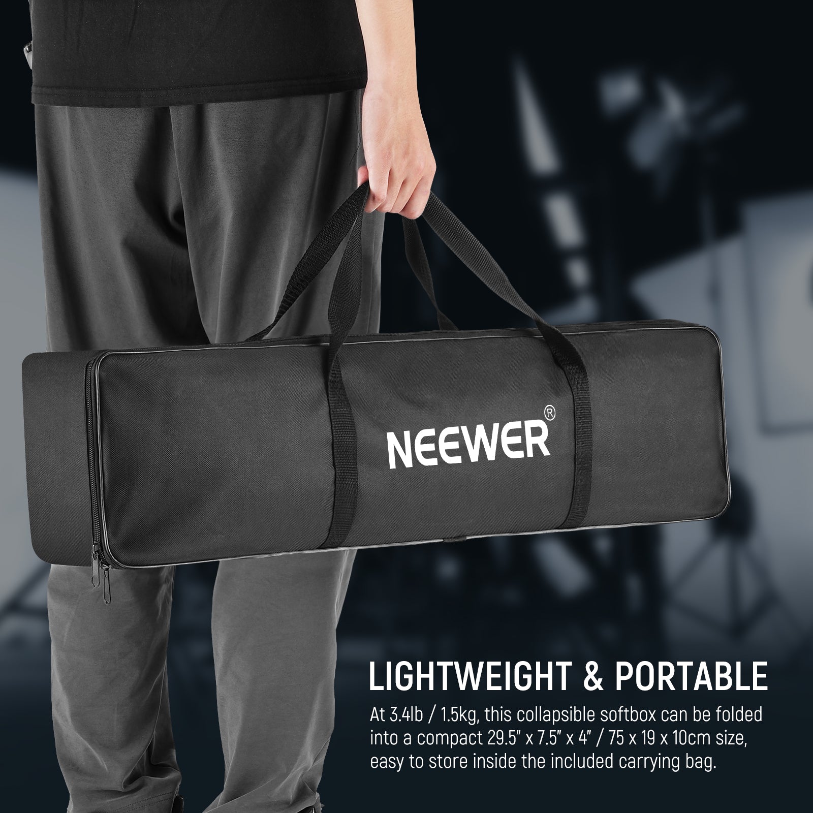 - Pliable et portable – Avec un poids plume de seulement 1,108 kg, cette boîte à lumière se plie, se range et se transporte facilement dans son sac de transport inclus. Idéale pour les portraits, la photographie de produits, les shootings beauté et mode, les mariages, les photos professionnelles et autres styles photographiques.