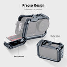 - Accès et chargement sans obstacle : la cage métallique Action 6 permet un accès complet à tous les ports, boutons et au couvercle de la batterie sans avoir à la retirer. Vous pouvez recharger votre appareil dans la cage et utiliser l’ouverture inférieure avec l’adaptateur magnétique à dégagement rapide (non inclus).