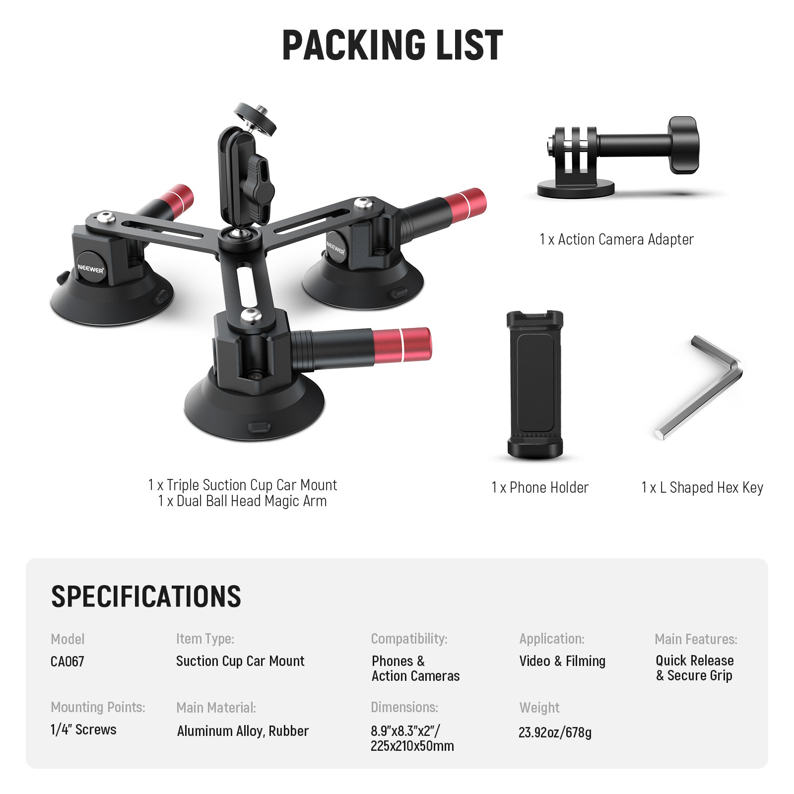 Support de caméra de voiture à triple ventouse NEEWER CA067
