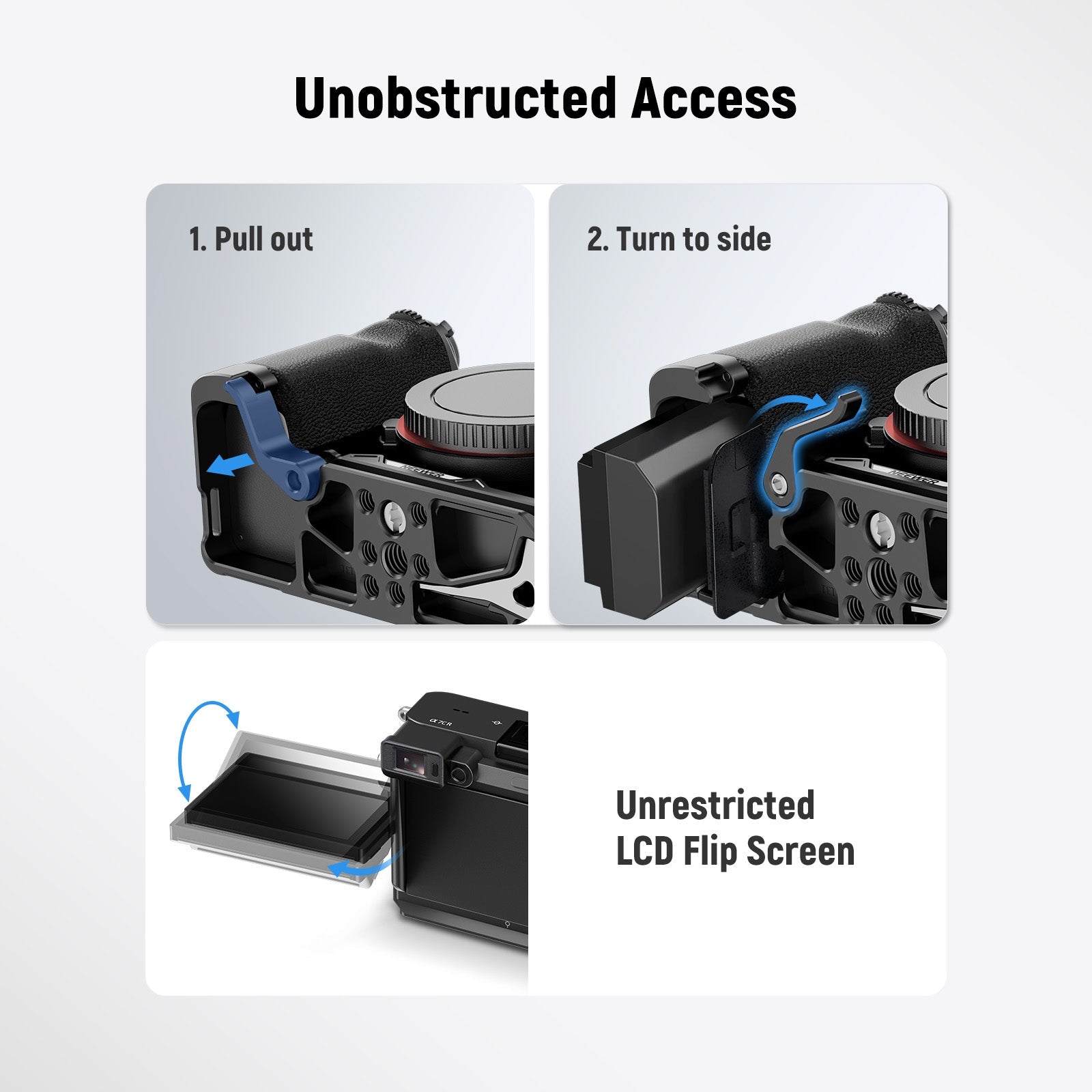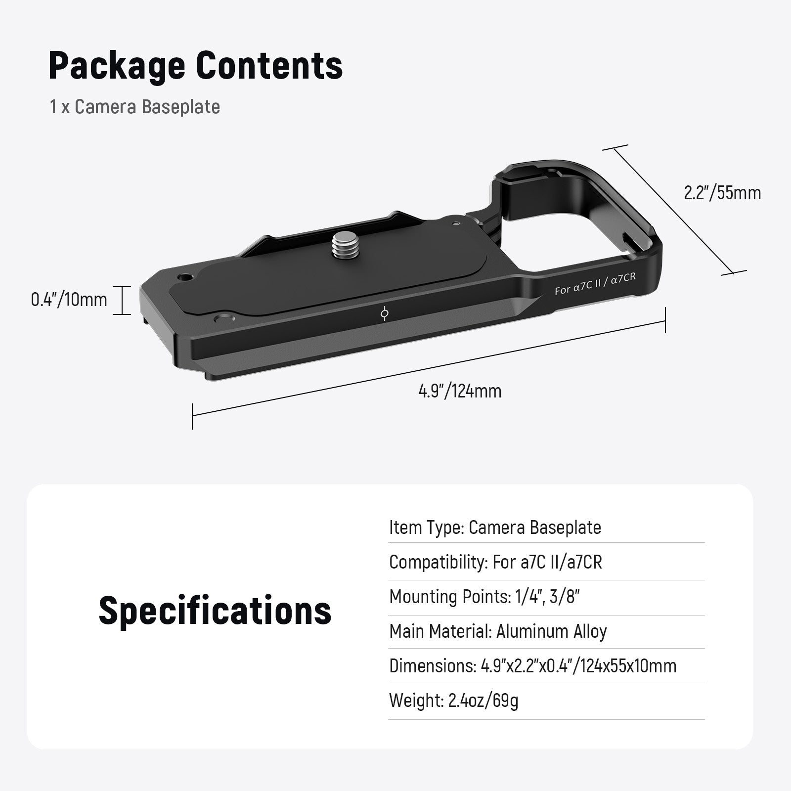 - Conçu pour les appareils photo α7C II/α7CR - Compatible avec les Sony Alpha α7CII et α7CR, cet accessoire de base pour appareil photo est doté d'un mécanisme à ressort qui offre un accès facile au compartiment de la batterie, tandis que sa conception mince préserve l'esthétique originale de l'appareil photo.