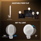 • Anneau lumineux selfie compact de 9,6 cm (3,8") - Cet anneau lumineux NR5 à pince, doté de 60 LED, offre une luminosité jusqu'à 550 lux à 0,3 m. Il se fixe facilement sur un téléphone, un ordinateur portable, un ordinateur de bureau, un écran ou un moniteur de table d'une épaisseur inférieure à 15 mm (0,59"). Léger et portable, cet anneau lumineux flatte toutes les carnations et constitue un éclairage d'appoint idéal pour le maquillage, les selfies, les vidéos pour les réseaux sociaux TikTok/YouTube, les podcasts, les appels FaceTime et Zoom, les réunions à domicile, les visioconférences, le streaming en direct, le vlogging, la vidéographie, etc.