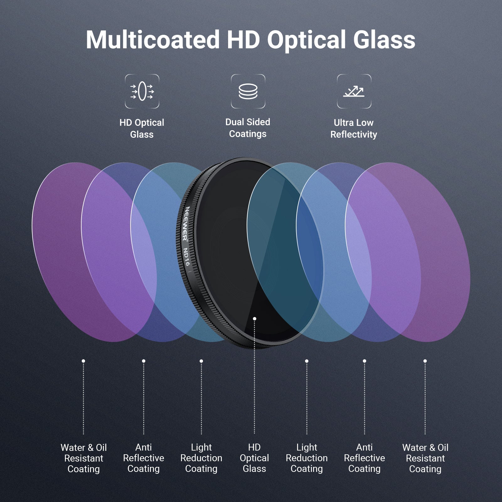 - Flexible Exposure Control- ND8, ND16, and ND32 neutral density filters provide 3, 4, and 5 stops of light reduction, allowing balanced exposure in various environments and creative motion blur effects