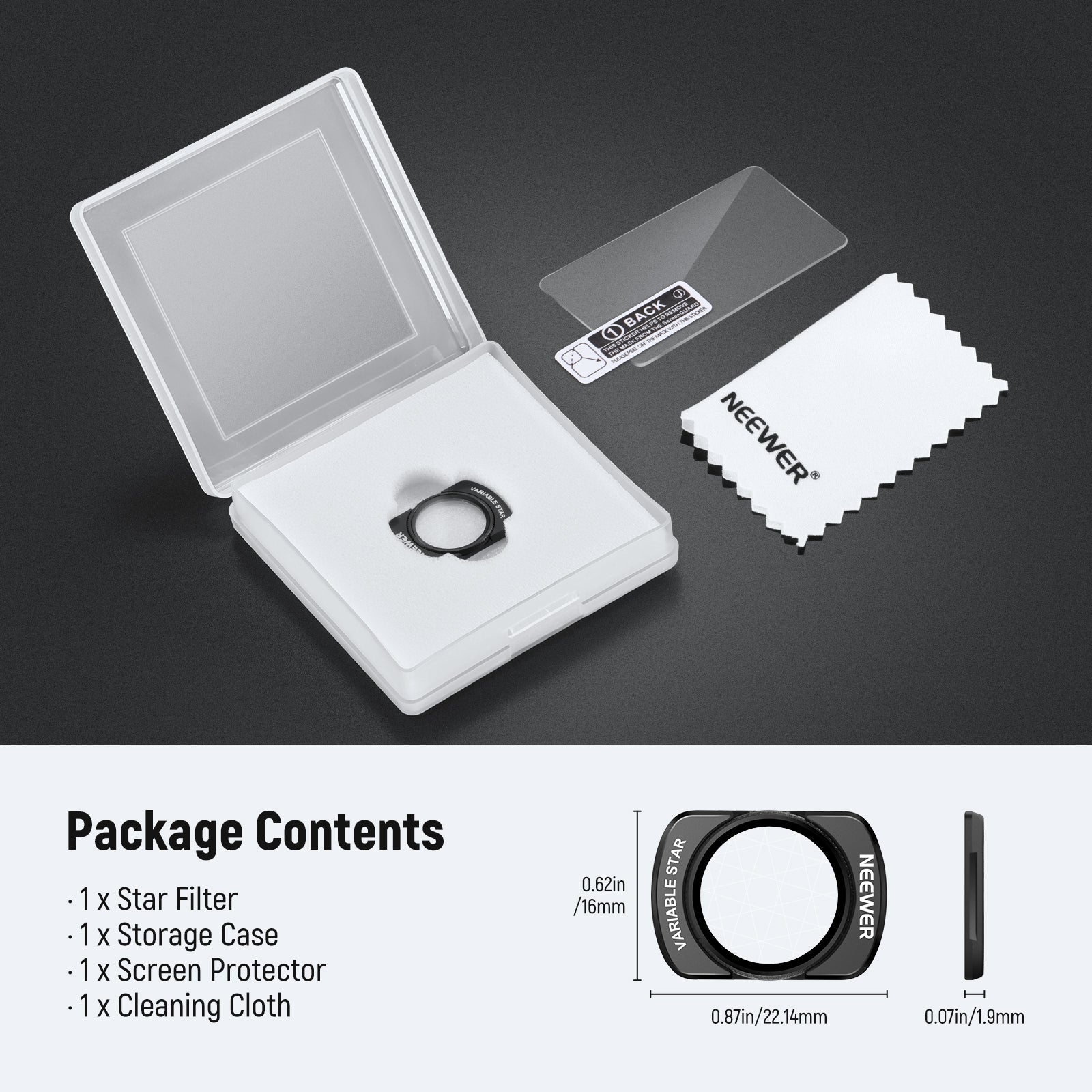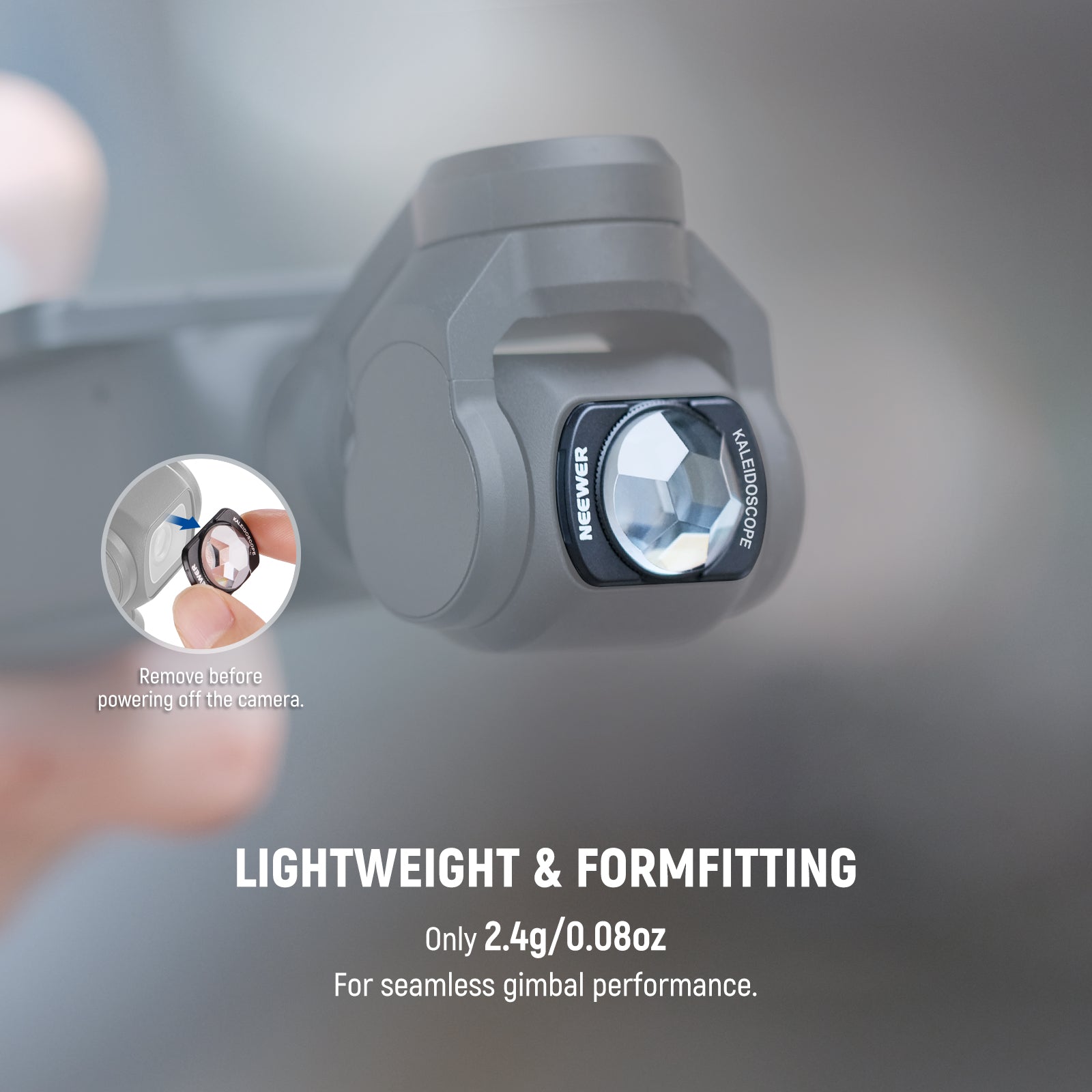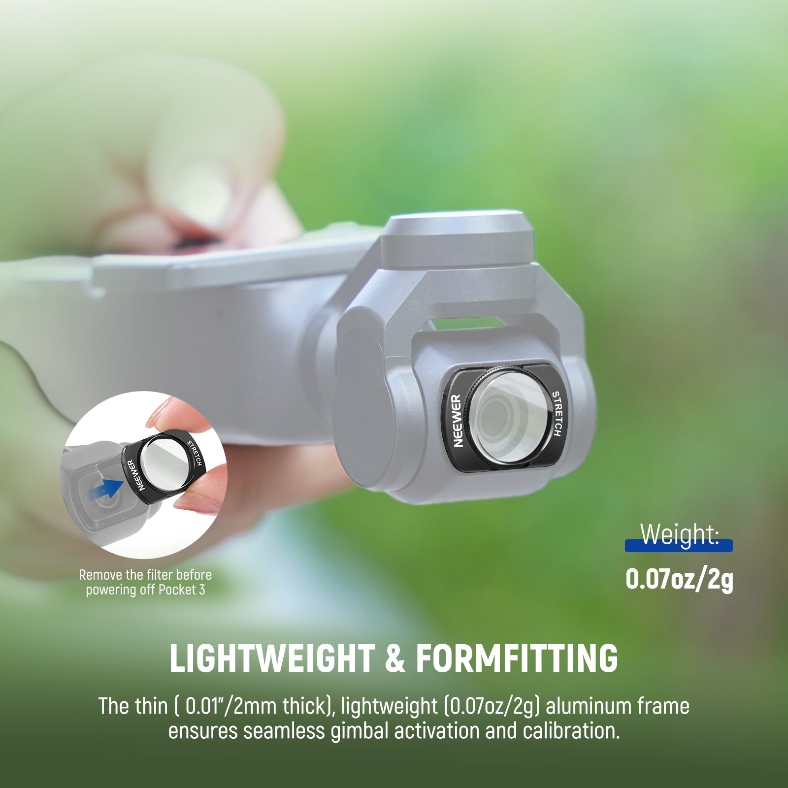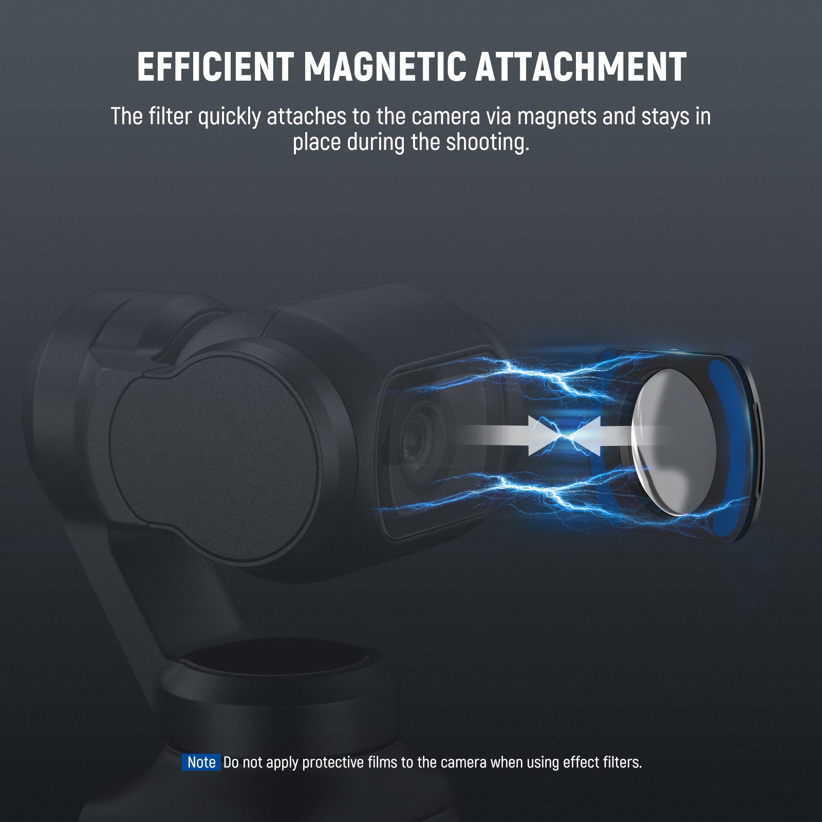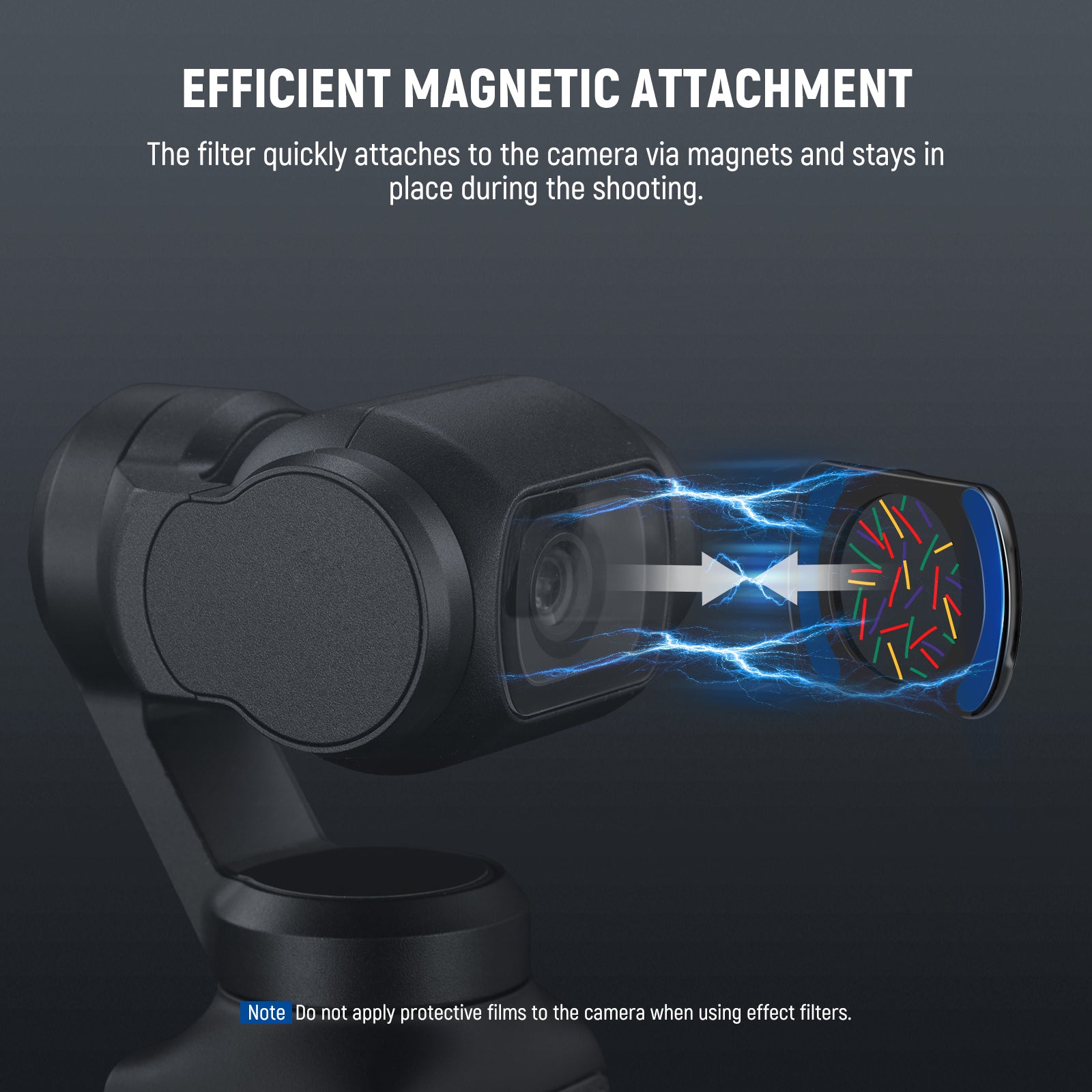 - Fixation magnétique efficace : le filtre se fixe rapidement à l’appareil photo grâce à des aimants et reste en place pendant la prise de vue. Son cadre fin assure un étalonnage et un rangement faciles du stabilisateur.