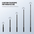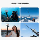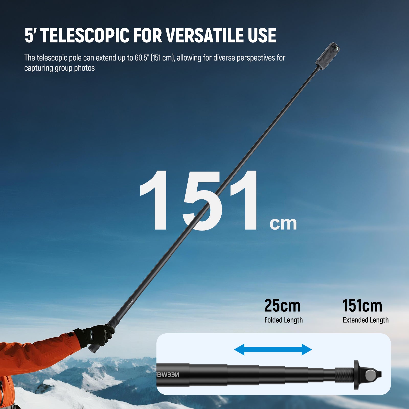 - Perche télescopique de 1,5 m pour une utilisation polyvalente - La perche télescopique s'étend jusqu'à 151 cm, offrant une grande variété de perspectives pour la capture de photos de groupe, de paysages, de vlogs, de vidéos de voyage ou d'événements comme des mariages et des concerts. Un accessoire indispensable pour les créateurs de contenu et les influenceurs. En mode panoramique, la perche n'obstrue pas la vue, pour des résultats plus immersifs et captivants.