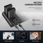 - Chargeur USB double emplacement - Ce chargeur USB vertical permet de recharger simultanément deux batteries LP-E6P à pleine capacité en seulement 6 heures, optimisant ainsi votre productivité (compatible avec les batteries originales et NEEWER LP-E6P/LP-E6NH/LP-E6N/LP-E6). Il est doté de deux ports d'entrée Micro USB et Type C, permettant la recharge via un chargeur portable, un chargeur de voiture ou un ordinateur grâce au câble USB A vers USB C fourni. Un écran LCD affiche l'état de charge en temps réel.