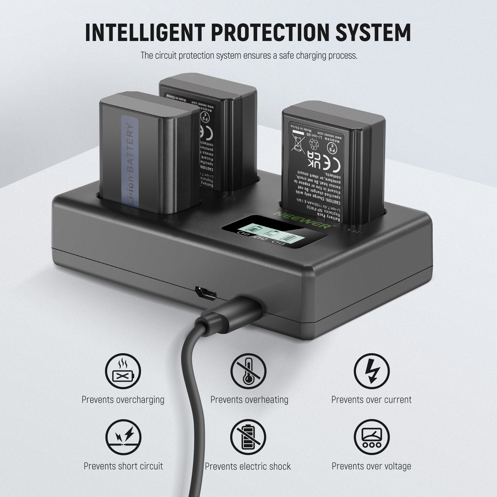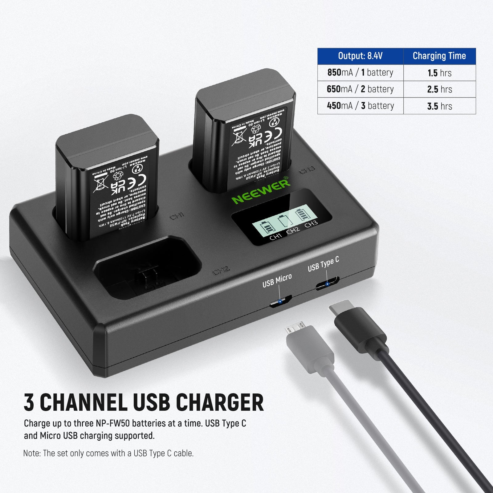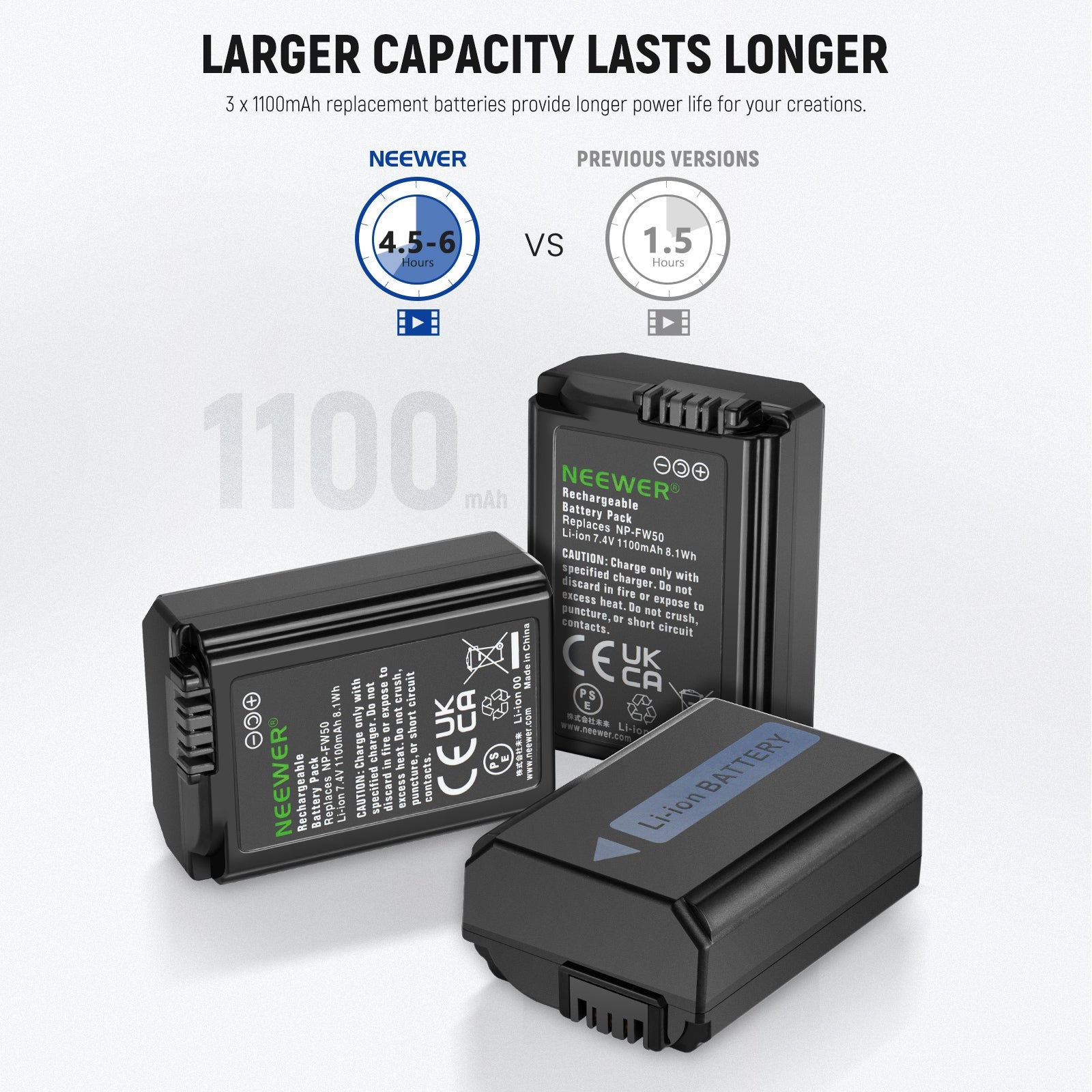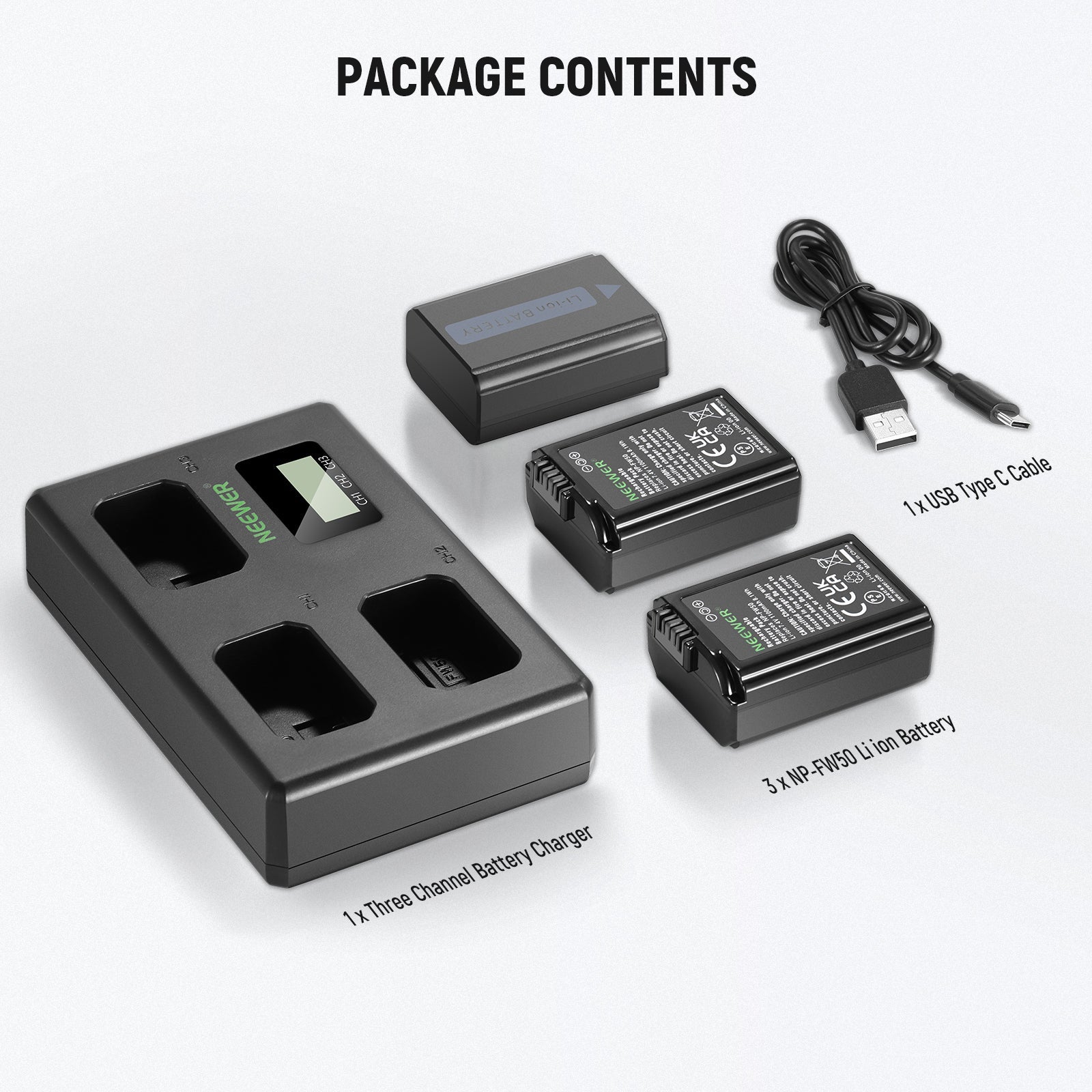 NEEWER NP-FW50 Lot de 3 batteries et chargeurs de remplacement pour Sony