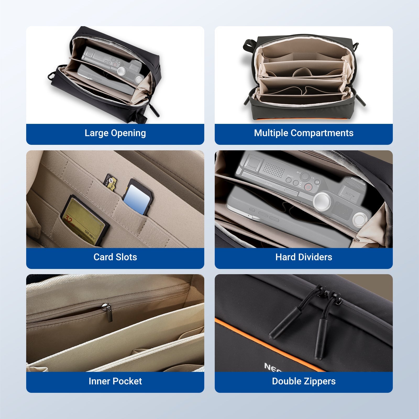- Conception à organisation diversifiée - Ce sac de voyage à compartiments multiples permet de ranger soigneusement divers accessoires électroniques et photographiques, tels que des câbles de charge, des câbles d'alimentation, des cartes SD, des SSD, des batteries et des chargeurs.