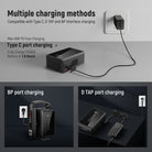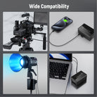 - Polyvalente et dotée de multiples ports – Équipée de ports USB-C, USB-A, DC 8 V, DC 12 V, BP et D-Tap, la mini-batterie à monture V PS050E permet une décharge simultanée via les ports USB-A et USB-C, avec une puissance totale constante de 100 W lors de la charge de plusieurs appareils. Les ports USB et DC sont situés de part et d'autre pour éviter toute déconnexion. Compatible avec les caméras cinéma 4K et 6K Canon, Sony et Nikon BMPCC, ainsi qu'avec les moniteurs Atomos Ninja V et NEEWER F500, les éclairages LED et les plaques de batterie à monture V PS005/PS006/PS007.