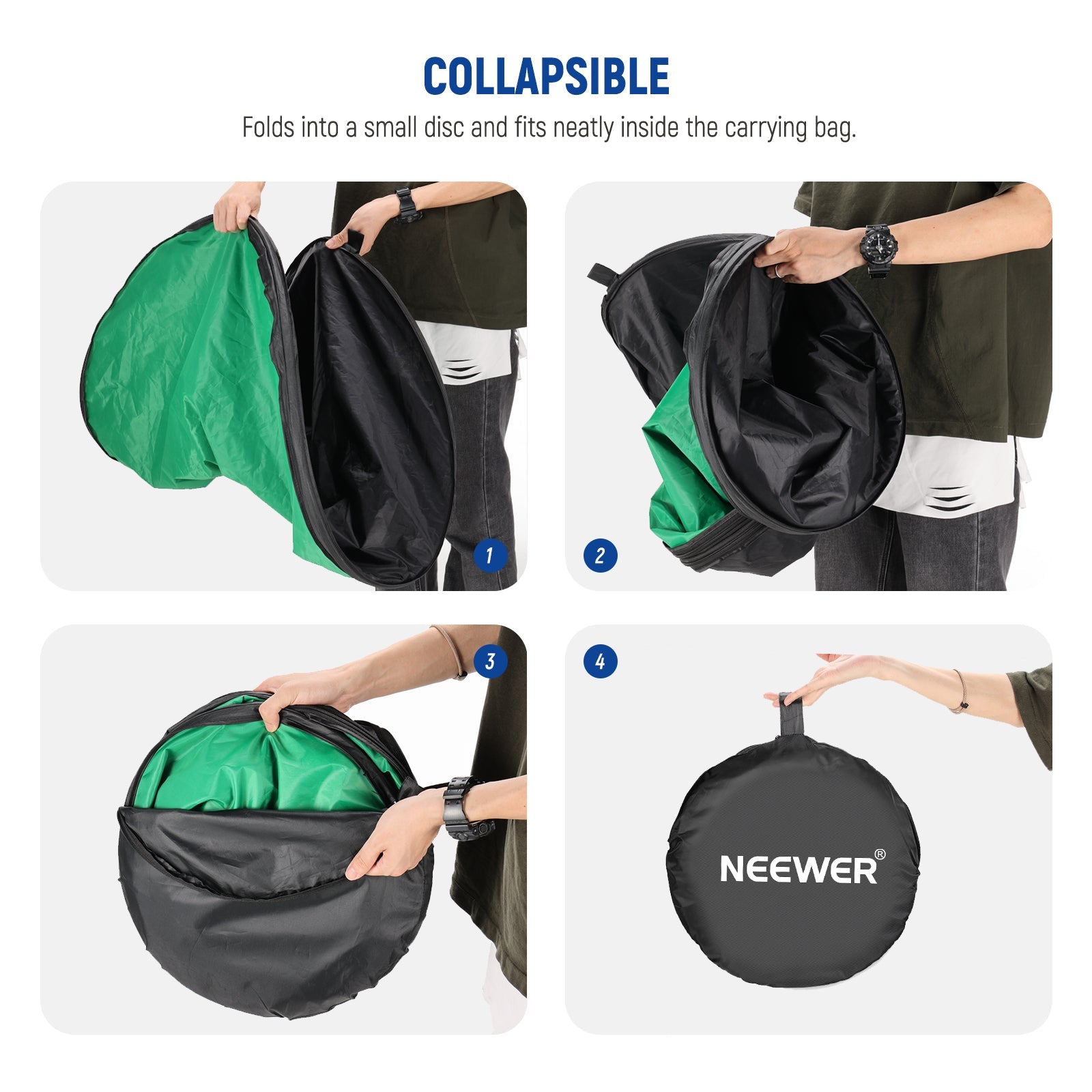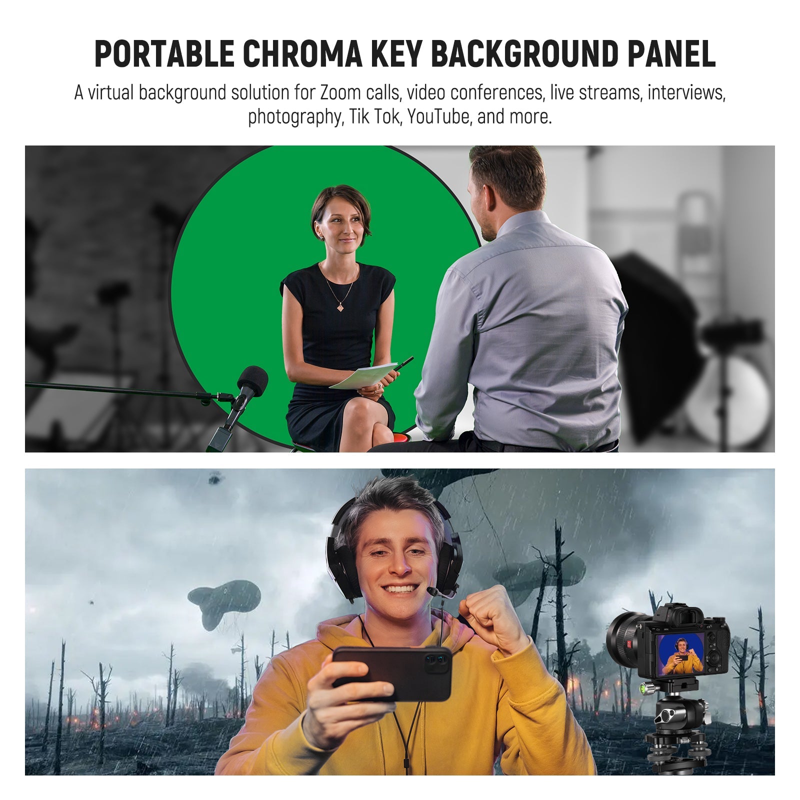 - Panneau de fond chroma key portable - La housse comporte également des couleurs verte et bleue permettant de transformer le réflecteur en un panneau de fond chroma key vert ou bleu. Une solution de fond virtuel idéale pour les appels Zoom, les visioconférences, les diffusions en direct, les interviews, la photographie, TikTok, YouTube et bien plus encore.