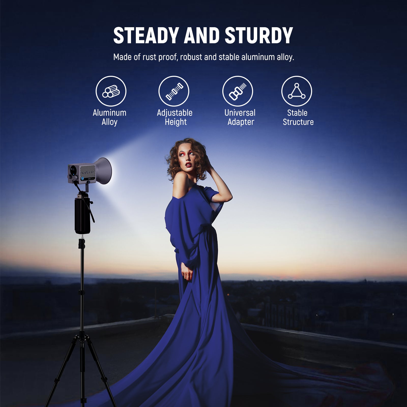 - Réglage de la hauteur de 47 à 195 cm (1,5 à 6,4 pi) : la colonne centrale de ce trépied d'éclairage robuste se compose de trois sections extensibles de 47 à 195 cm (1,5 à 6,4 pi) pour s'adapter à différentes positions de montage de votre équipement. Un système de verrouillage rapide entre chaque section assure une fixation sécurisée après réglage. Vous n'aurez donc aucun souci de stabilité lors de son utilisation.