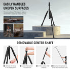 - Trépied stable à pieds réglables - Les pieds télescopiques en deux sections offrent 3 angles de déploiement, faciles à déployer et à fixer grâce à leur système de clips. Déployez les pieds jusqu'à ce que la colonne centrale touche le sol pour obtenir l'angle maximal et une stabilité optimale du trépied.