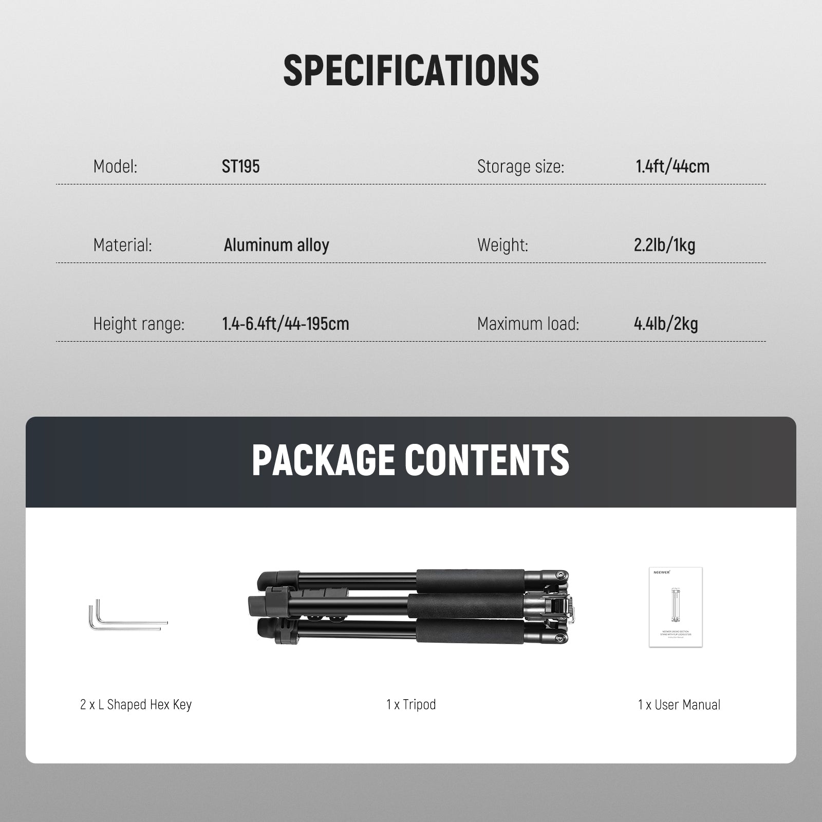 - Compatibilité polyvalente - Le trépied photo NEEWER ST195 est doté d'une vis 1/4" permettant de fixer une large gamme d'accessoires photographiques, et pas seulement des flashs, tels que des éclairages continus, des anneaux lumineux, des éclairages vidéo LED, des monolights, des boîtes à lumière, des parapluies et des caméras d'action. Que ce soit pour la photographie de produits, de portraits ou de prises de vue en extérieur, ce trépied répond à tous vos besoins.