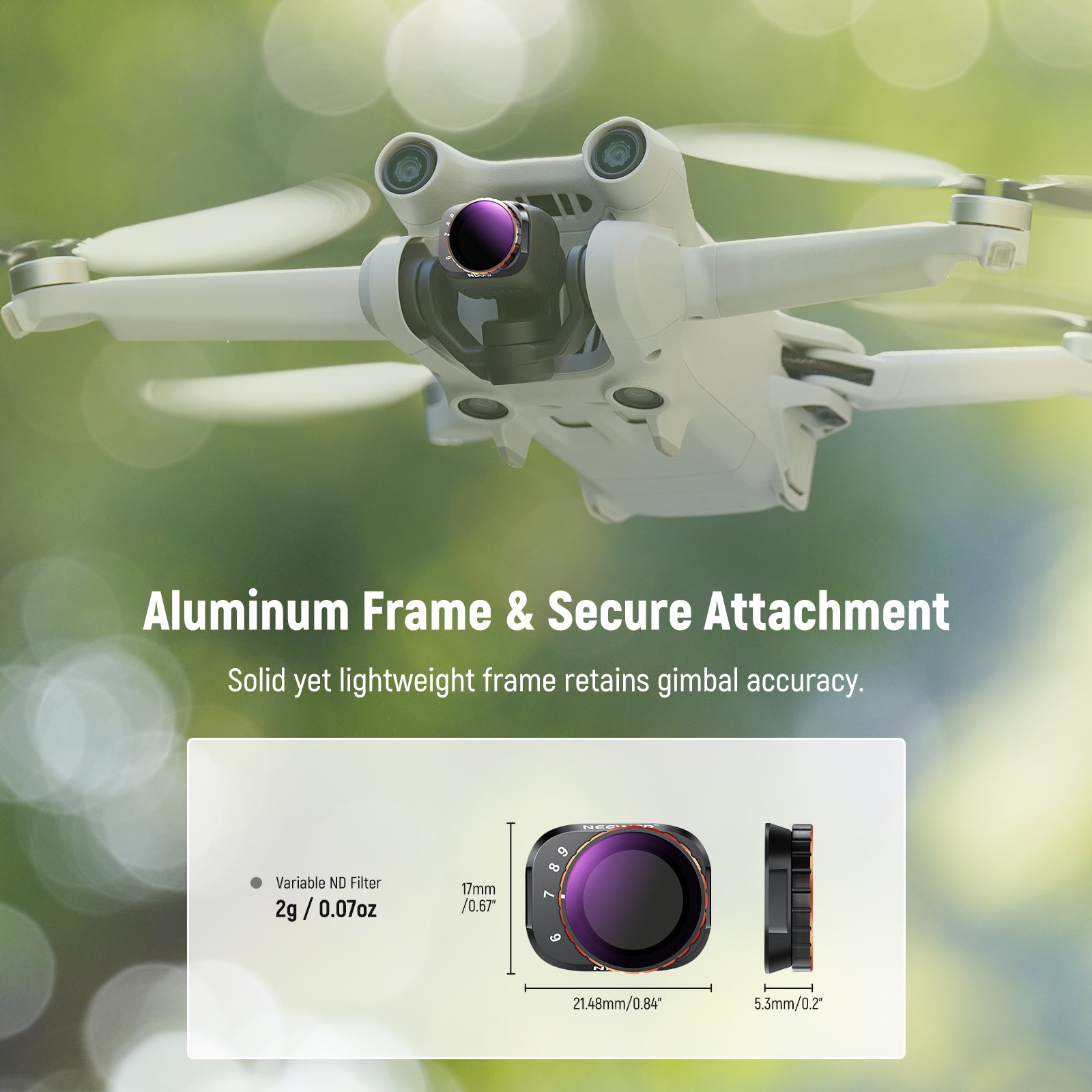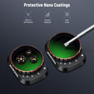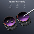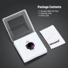 - Installation sécurisée par simple pression - Chaque filtre se fixe rapidement sur l'appareil photo et se verrouille en place grâce à un crochet, assurant une fixation sécurisée pendant les vols.