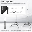 • 83"/210cm Light Stand- Constructed from aluminum alloy, giving them exceptional strength for heavy-duty work. And use quick single-action locks, providing fast precision height adjustment. (1)Comes with a carrying bag to transport and protect the equipment easily.