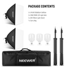 • The kit included- (2) 24"X24"/60x60cm Softbox + (2) 35W 5700K LED Light Bulb (total equivalent to 700W regular incandescent bulbs) + (2) 83"/210cm Light Stand + (1) Carrying Bag. This professional kit is perfect for advertising products, photo art, industrial, scientific, and technical photography, and photographic reproduction.