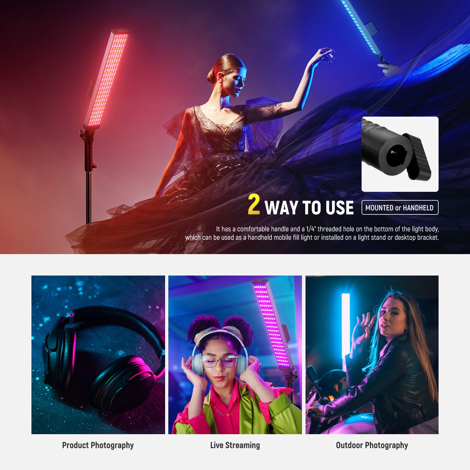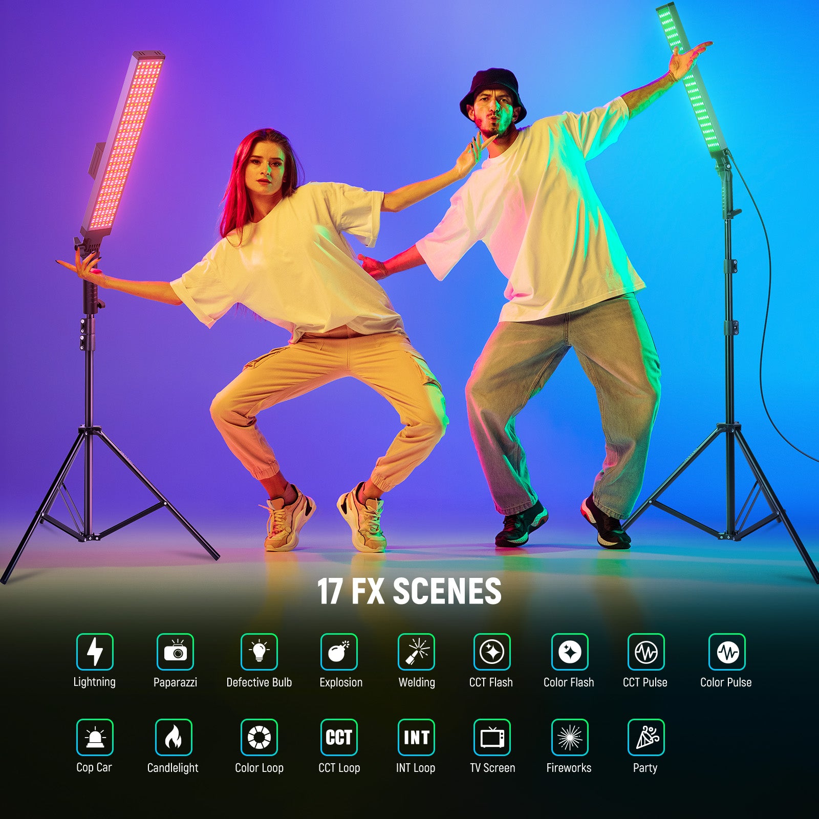 NEEWER 2 Pack BH20C RGB Light Stick Studio Lighting Kit