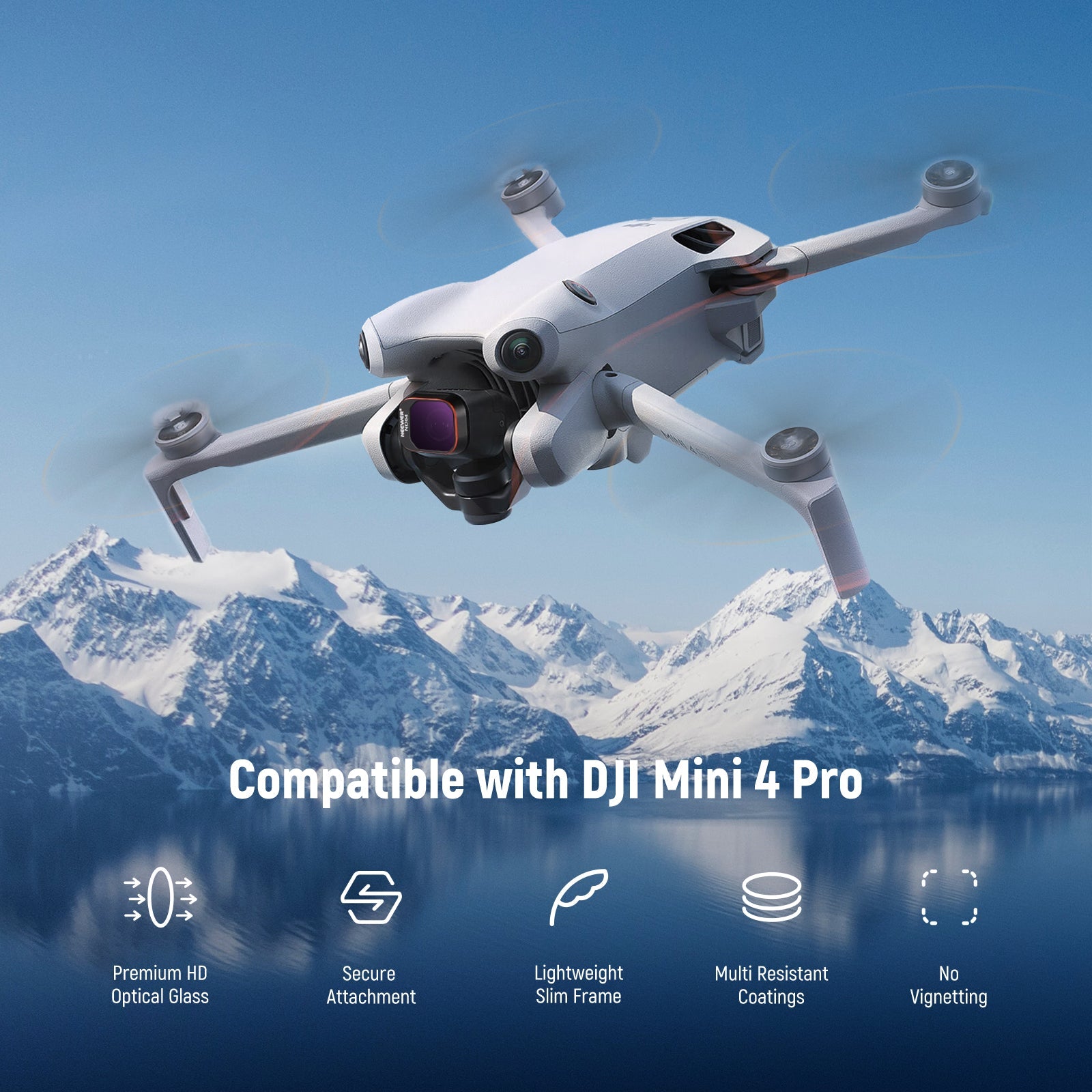- Dedicated to Mini 4 Pro- Introducing the latest must have ND & CPL filter set, compatible with DJI Mini 4 Pro.This NEEWER filter kit boasts top notch HD glass that ensure crystal clear imaging during aerial shooting. It's a game changer for drone enthusiasts looking to optimize shutter speeds, minimize glare, enrich colors, and achieve impeccable exposure in varying weather conditions