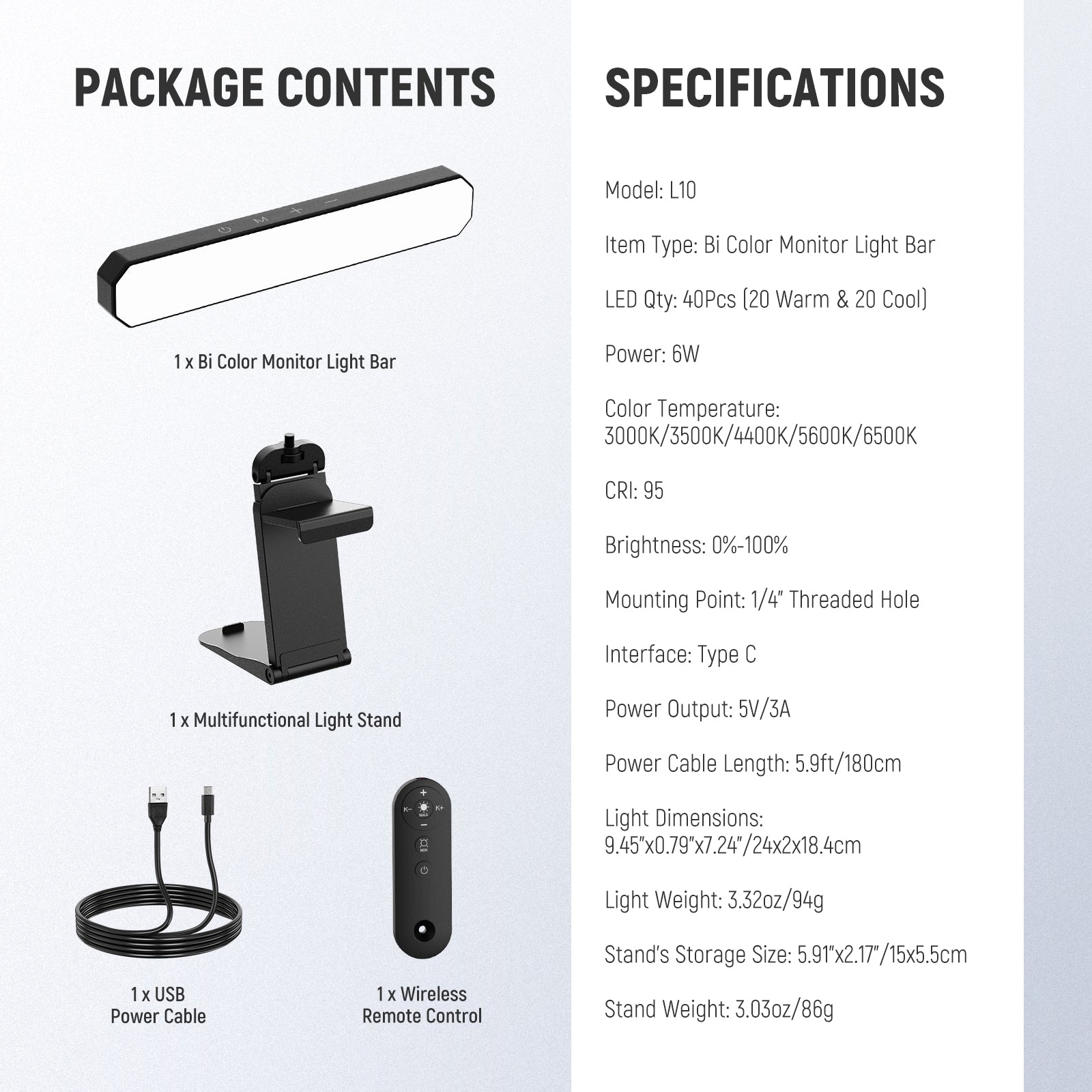 - 1 x Bi Color Monitor Light Bar