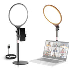 - Full Screen Ringlight with Edge Lit Design- Covered in a quality light diffuser panel and featuring advanced edge lit technology, the 168 LEDs deliver soft, evenly diffused, eye friendly lighting with no glare, enhancing your camera appearance by highlighting facial contours and features. Emitting up to 880lx/0.5m, the 10.5" large circle halo light with stand for video recording illuminates the finest details of your subject, providing wide, uniform lighting coverage for your workspace