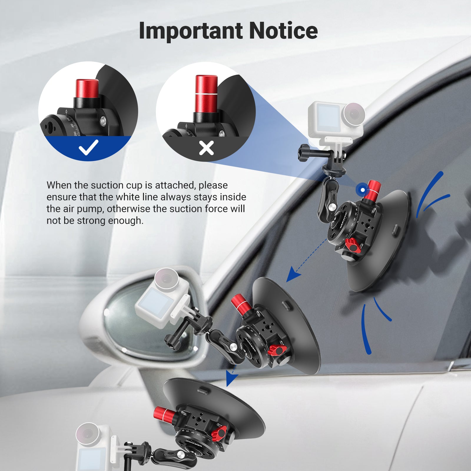 - Premium Construction- Crafted with rigid and corrosion resistant aluminum alloy, the suction cup mount can withstand uncertain outdoor environments. And the silicone rubber cup is durable and easy to clean with water