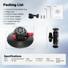 - Excellent Load Capacity- The suction cup mount can support devices up to 11 lbs (5 kg) in dynamic environments (on smooth, non bumpy roads at speeds not exceeding 80 km/h). For static use, it holds up to 132 lbs (60 kg) horizontally and 110 lbs (50 kg) vertically, making it an ideal choice for road trip POV video recordings