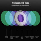 - Multicoated HD Optical Glass- HD optical glass ensures sharp images without chromatic aberration or optical distortion. Multiple protective coatings on both sides resist water, oil, dust, and scratches for high durability and effortless cleaning