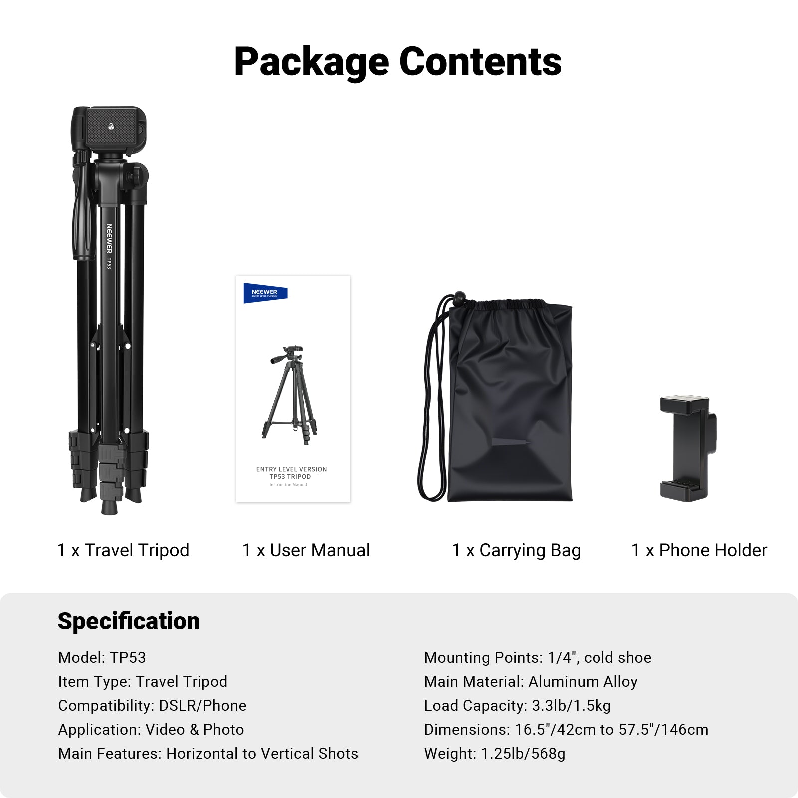 NEEWER Entry Level Version TP53 Metal Travel Tripod