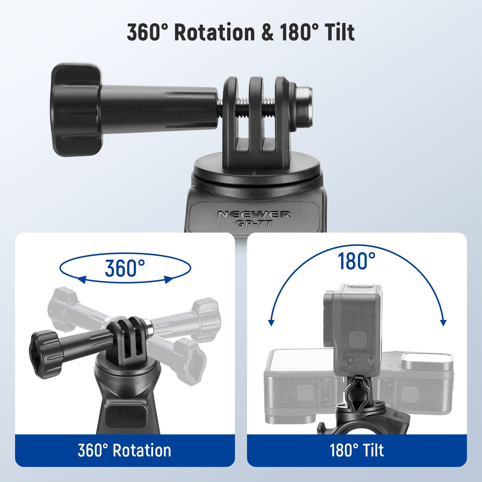 - 360° Rotation & 180° Tilt- The strap mount enables 360° rotation and 180° tilt using the locking screw, ensuring your action camera is securely positioned for flexible angles, and enhancing the shooting experience