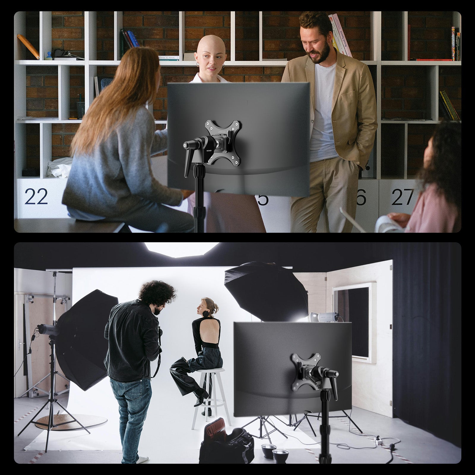 - Universal 5/8" Receiver Adapter- Designed with a 5/8" receiver, the display mount can connect to a C stand, desktop monitor stand, and heavy duty light stand with a 5/8" stud for conferencing, presentation, TV production, and interviewing