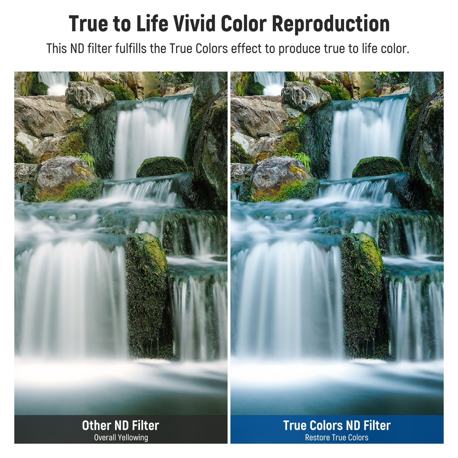 - True to Life Vivid Color Reproduction- This ND filter fulfills the True Colors effect to produce true-to-life color. Let you spend more time on creations rather than post processing for color correction